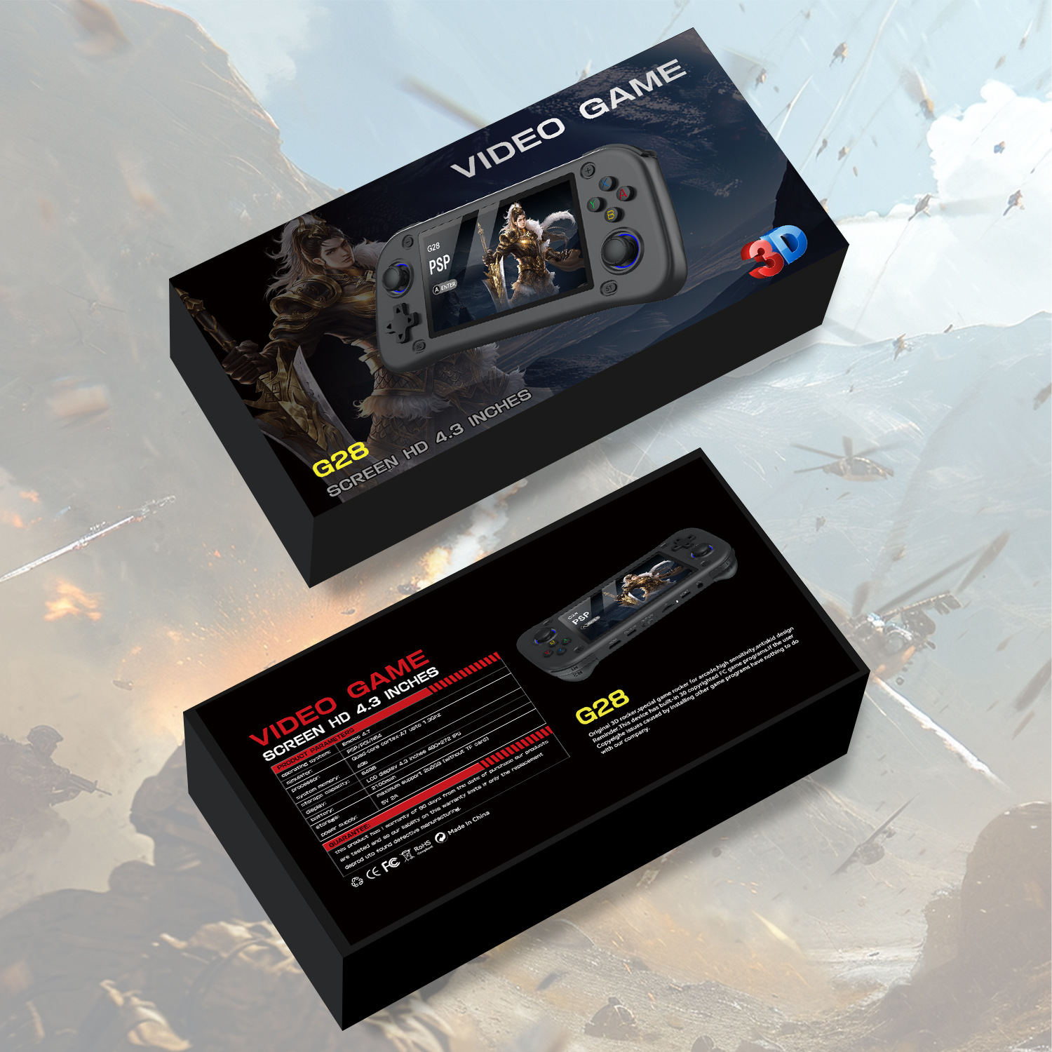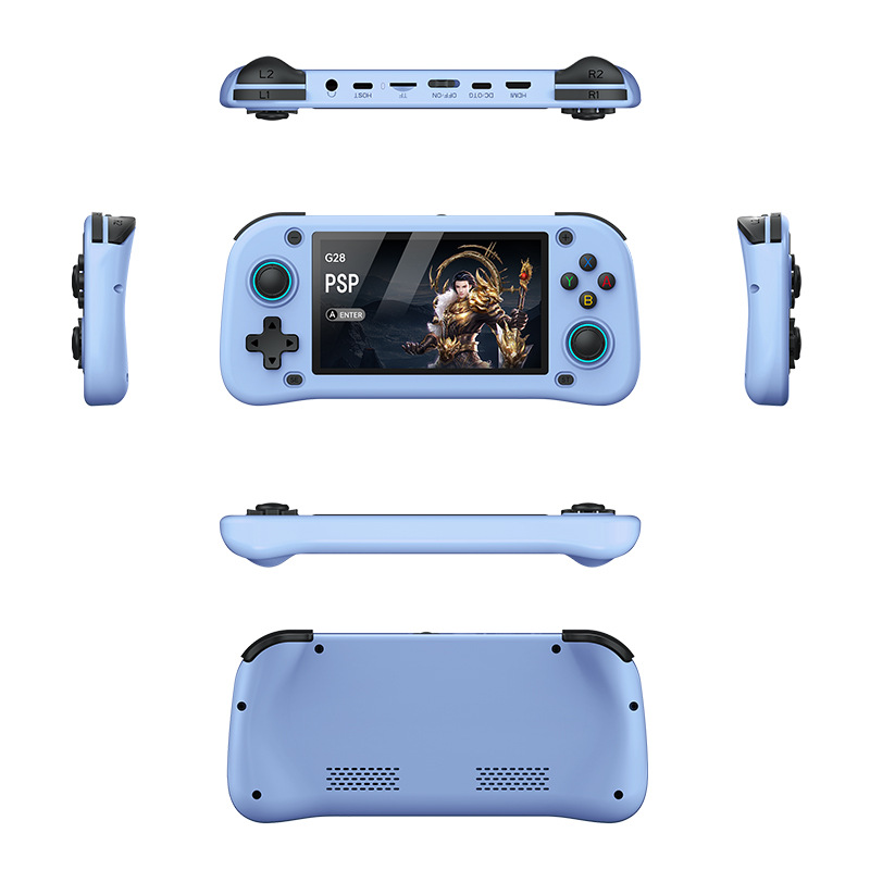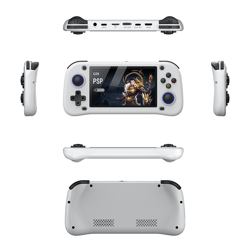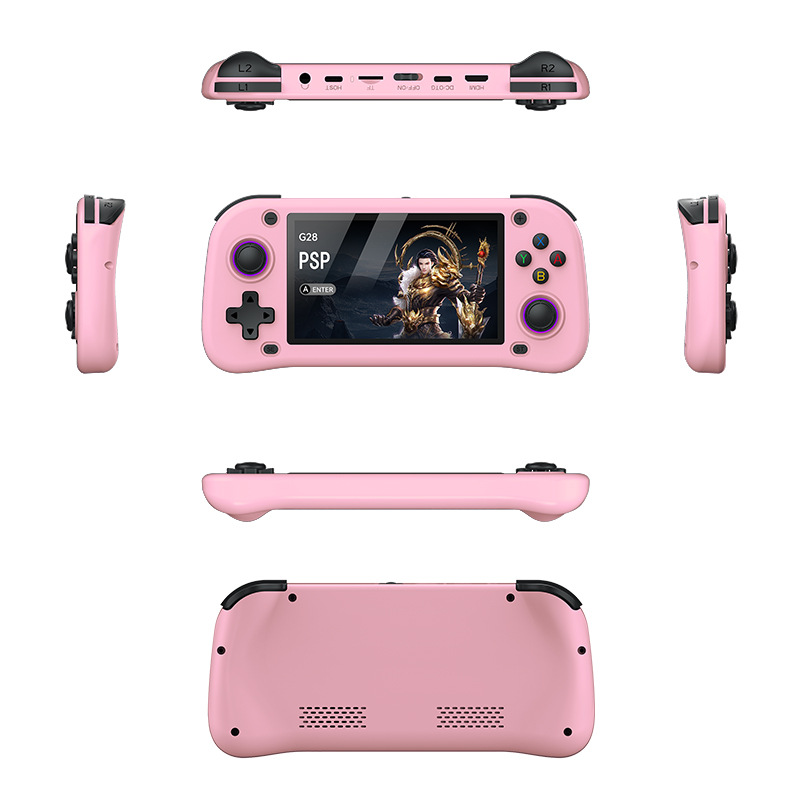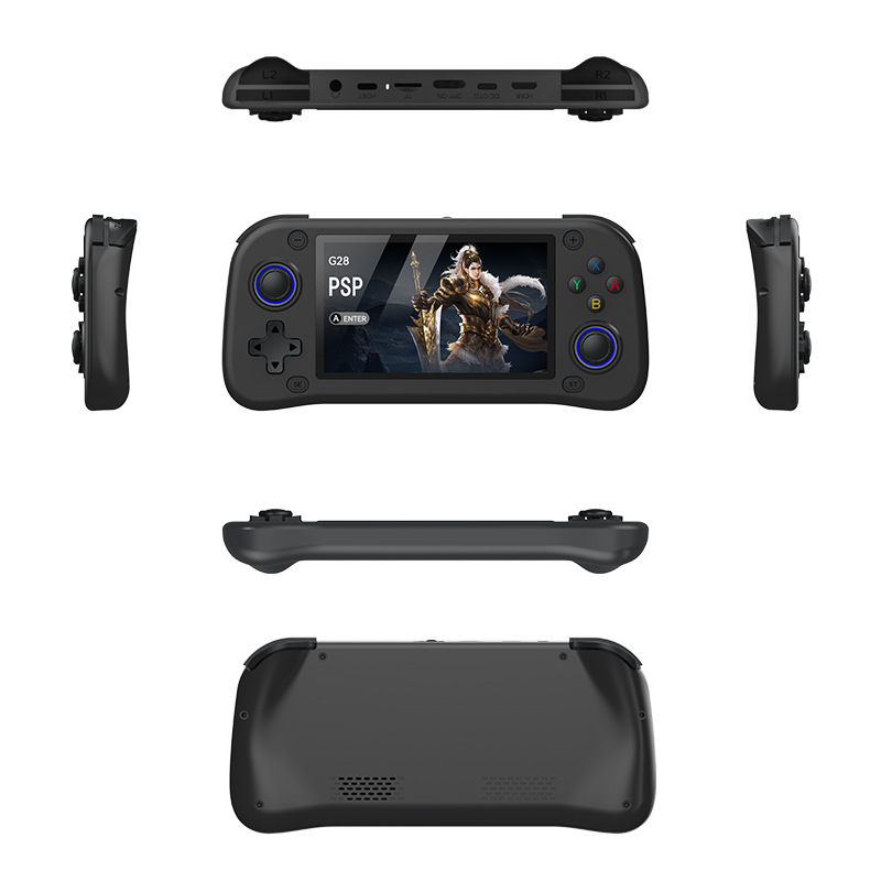 국경 간 새로운 G28 핸드 헬드 게임기 4.3 인치 HD LINUX 대형 스크린 복고풍 향수 PSP 아케이드 게임