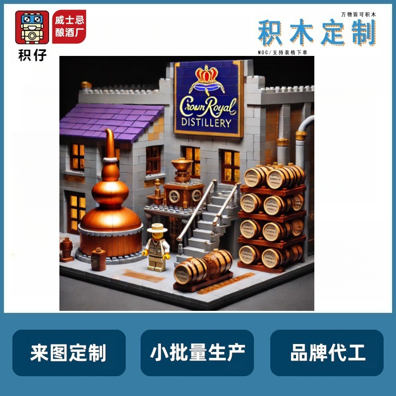 빌딩 블록 맞춤형 위스키 양조장 선물 디자인 소스 공장 건물 거리 장면 장식 모양