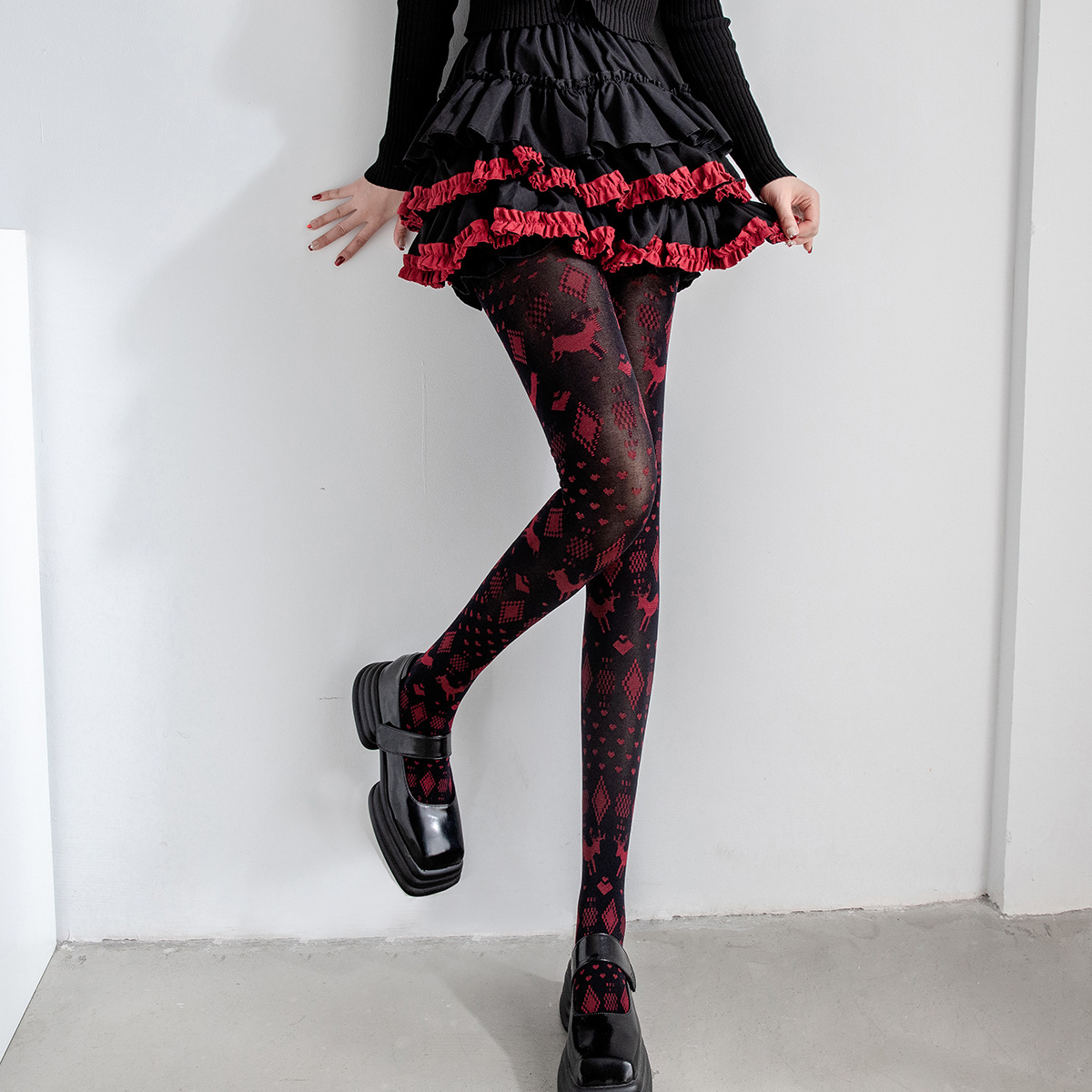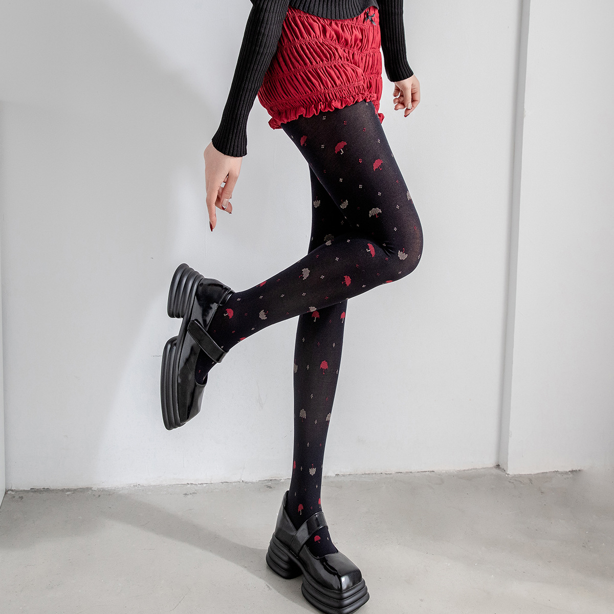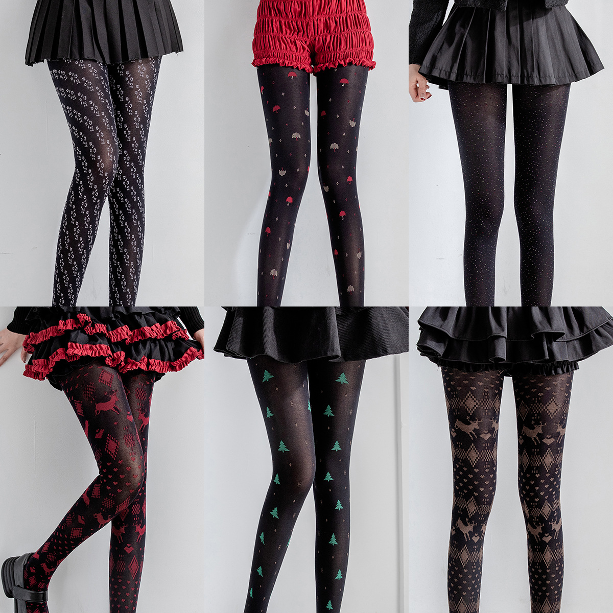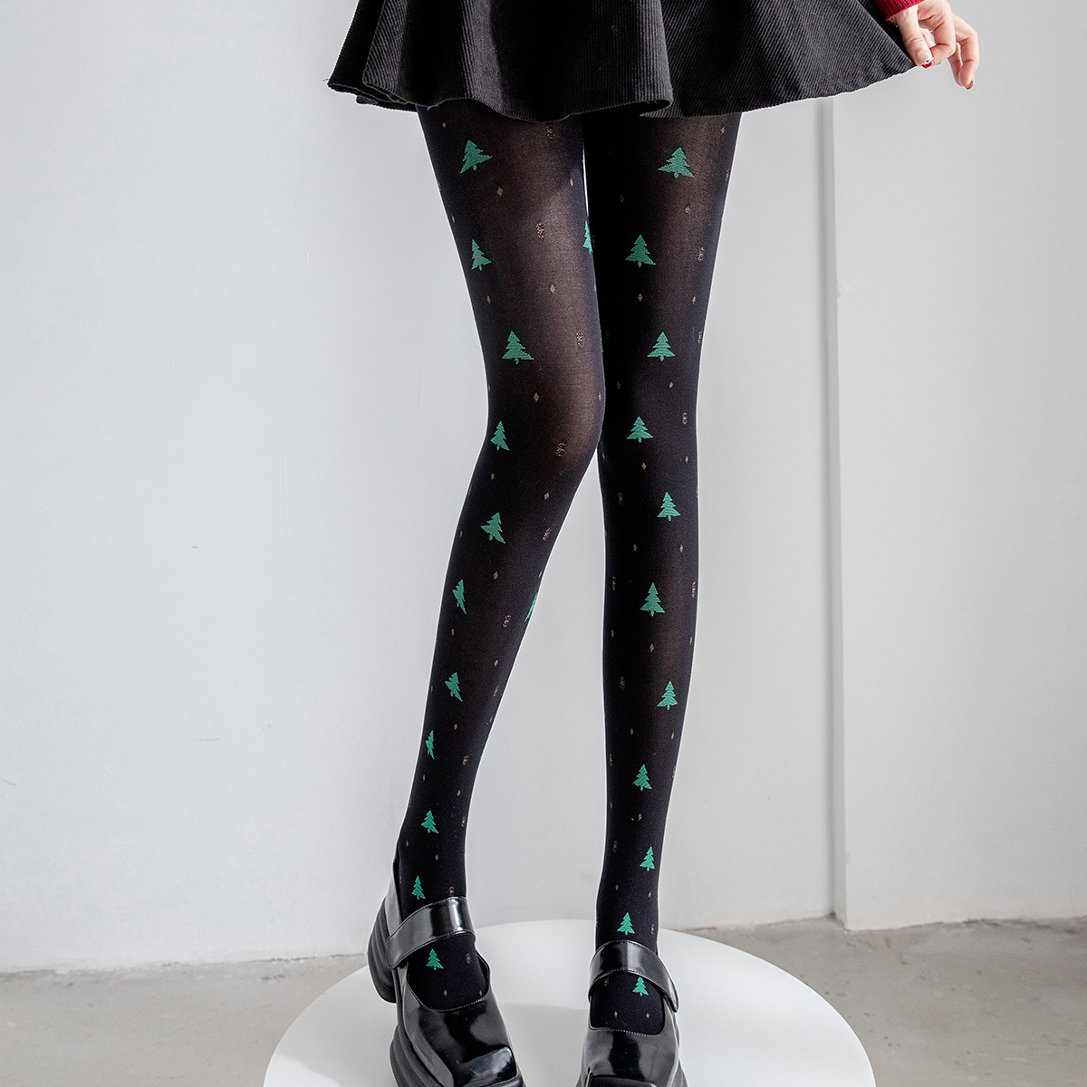 봄과 가을 새로운 크리스마스 트리 순록 자카드 빈티지 베이스 팬티 스타킹 귀여운 달콤한 팬티 스타킹 여성