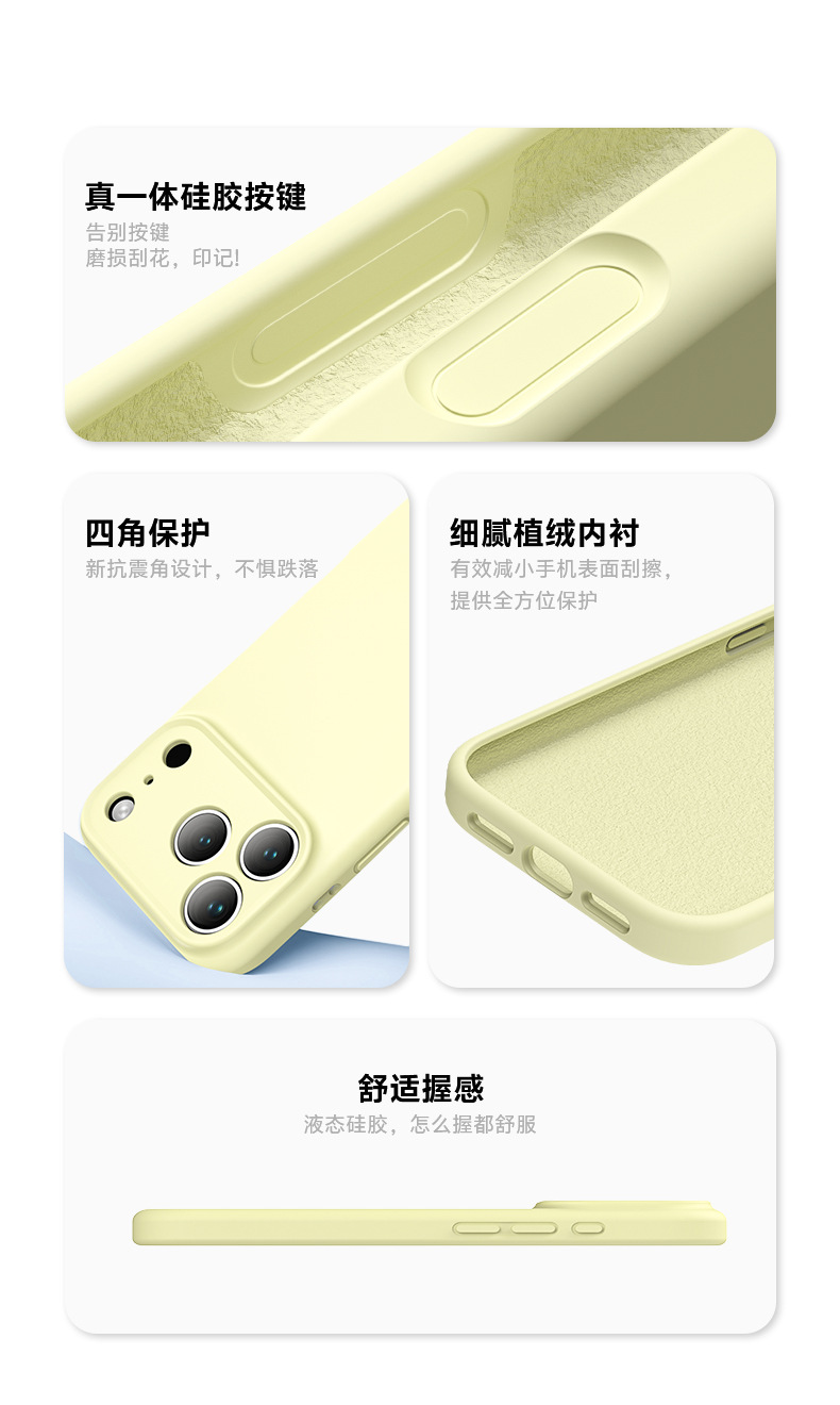 iPhone17Pro 단색 액체 실리콘 휴대폰 케이스에 적합합니다. 모든 항목을 포함하는 미세 구멍 통합 버튼 휴대폰 보호