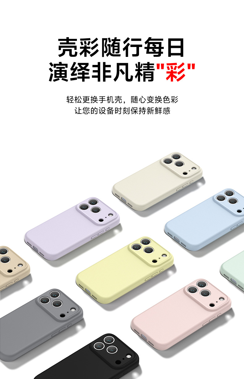 iPhone17Pro 단색 액체 실리콘 휴대폰 케이스에 적합합니다. 모든 항목을 포함하는 미세 구멍 통합 버튼 휴대폰 보호스토어 가기