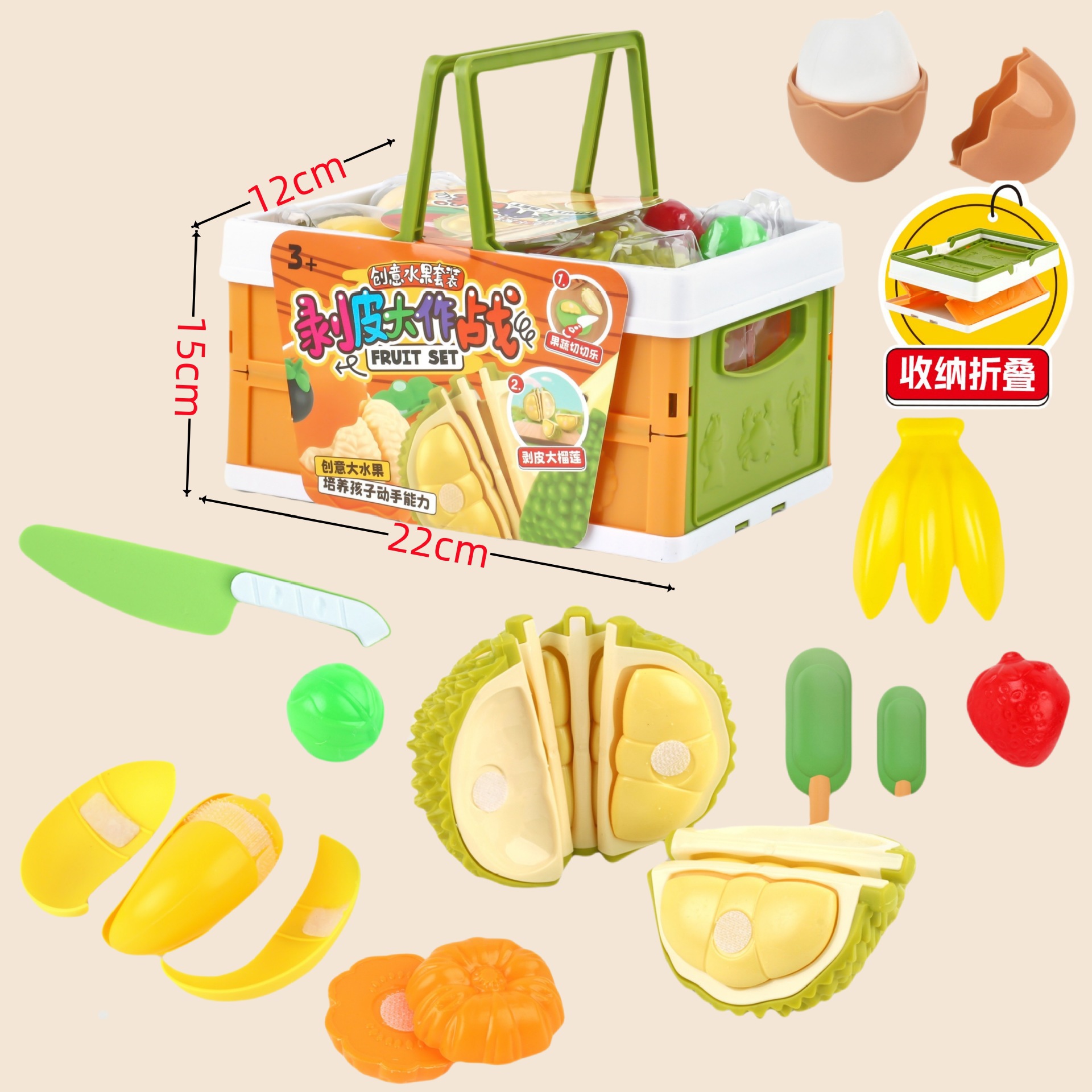 • 껍질을 벗긴 두리안 과일 커틀릿 휴대용 보관 바구니