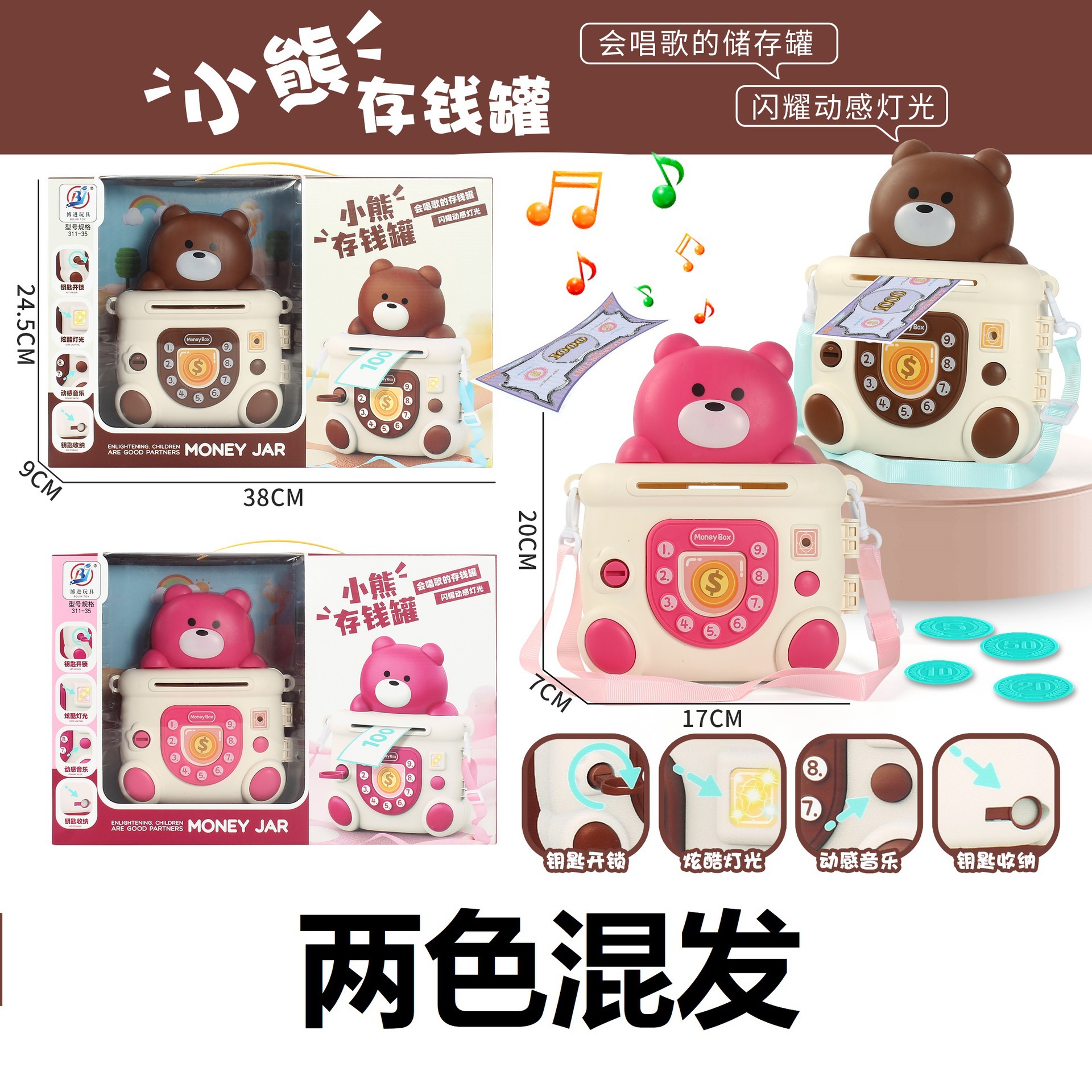 • 핑크 베어 라이트 뮤직 백팩 돼지 저금통