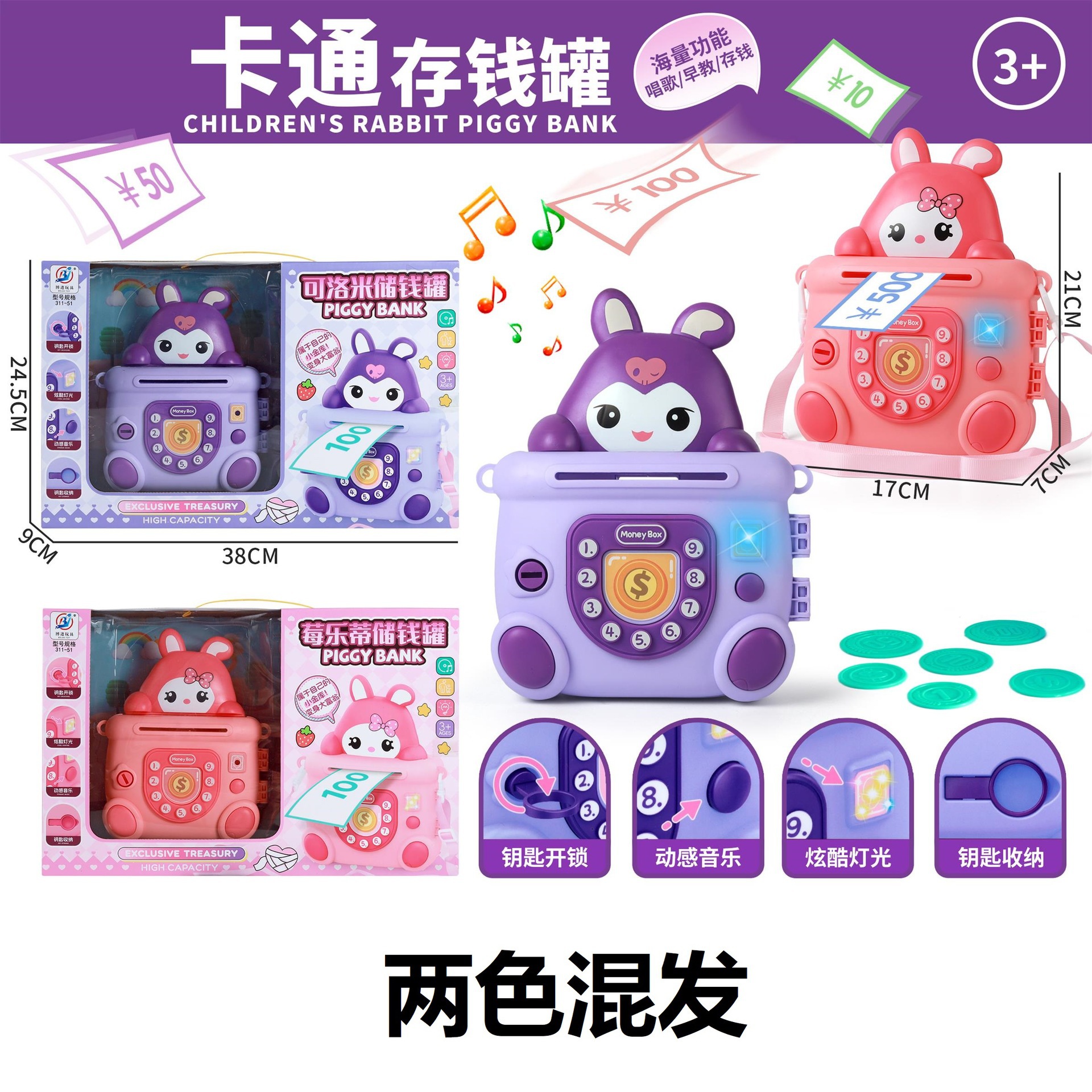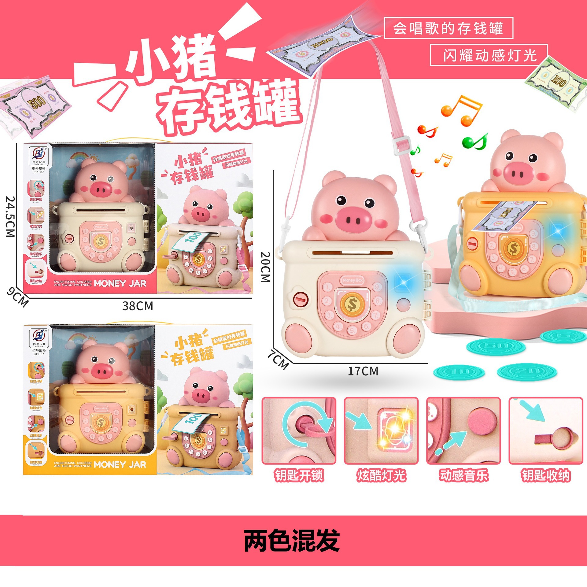• 귀여운 돼지 빛 음악 배낭 돼지 저금통