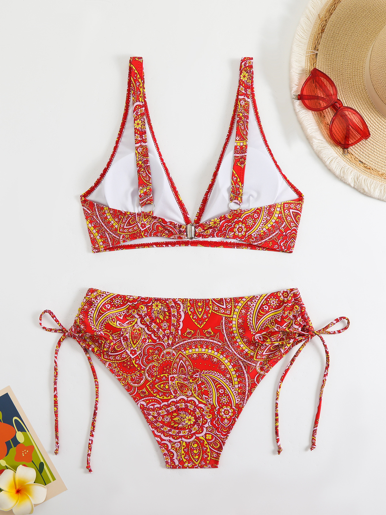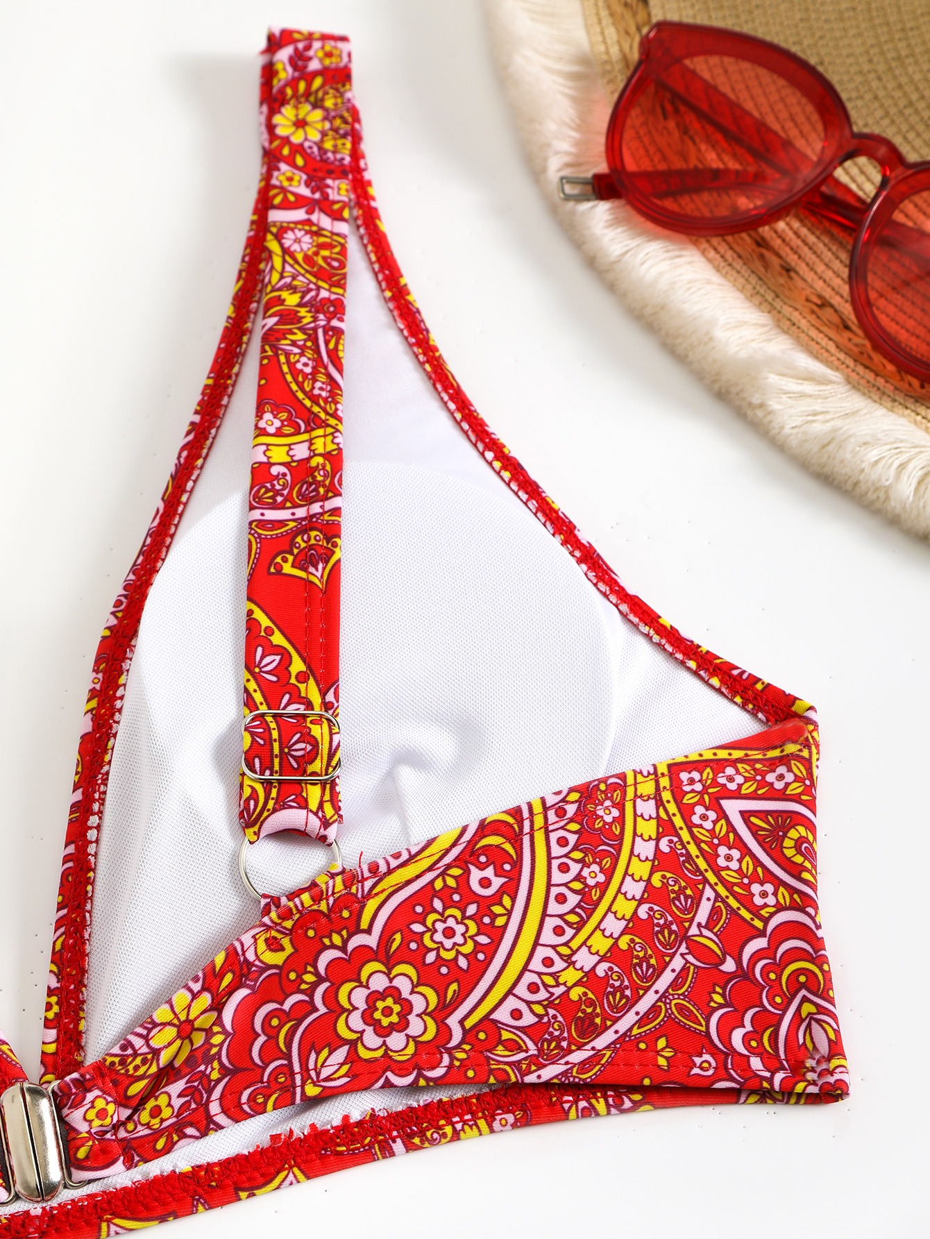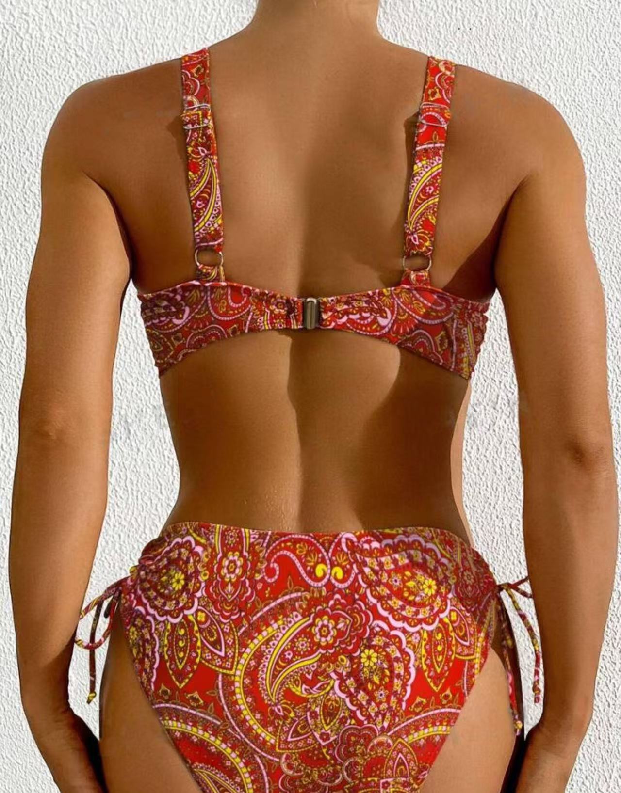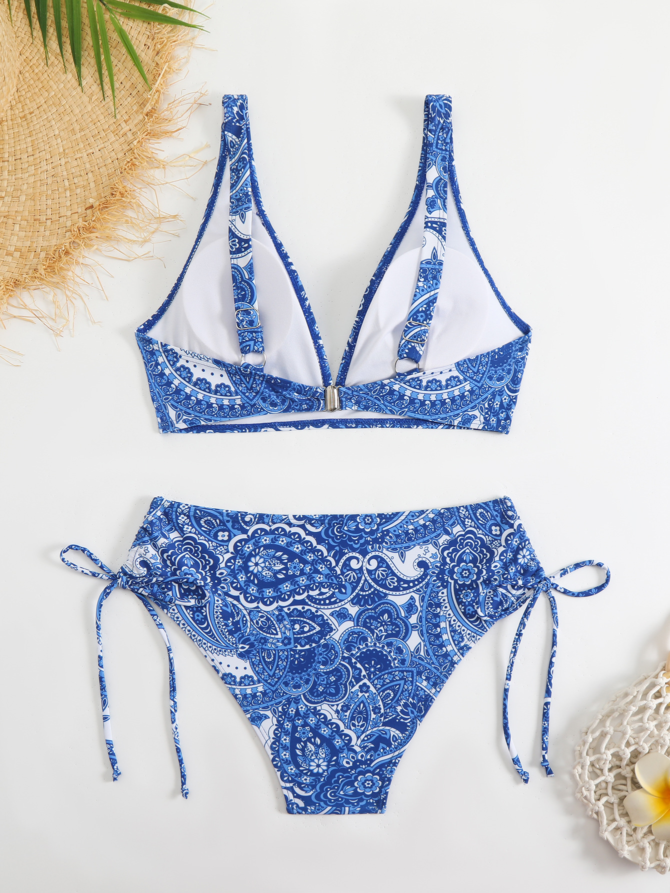 국경을 넘는 새로운 여성 수영복, 패셔너블한 프린트, 섹시한 끈 장식, 분리형 비키니, 알리익스프레스 해변 수영복, 대외 무역