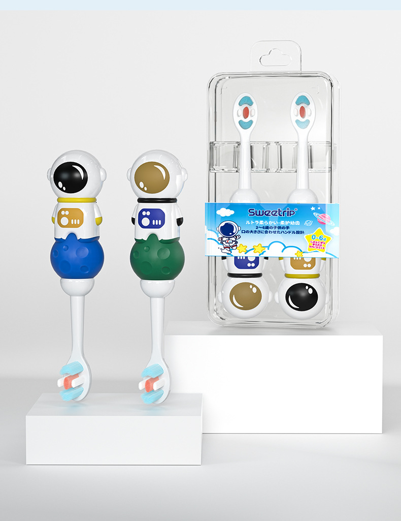 만화 우주 비행사 고급 부드러운 강모 어린이 칫솔 3-12 세 귀여운 어린이 부드러운 강모 칫솔 제조 업체 도매에 적합스토어 가기