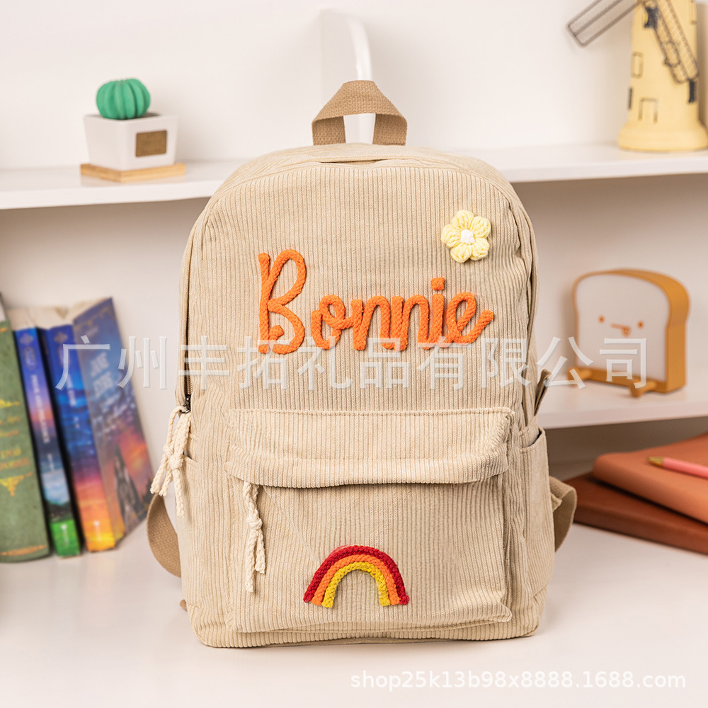 개인화 된 짠 꽃 무지개 이름 코듀로이 어린이 유아 배낭
