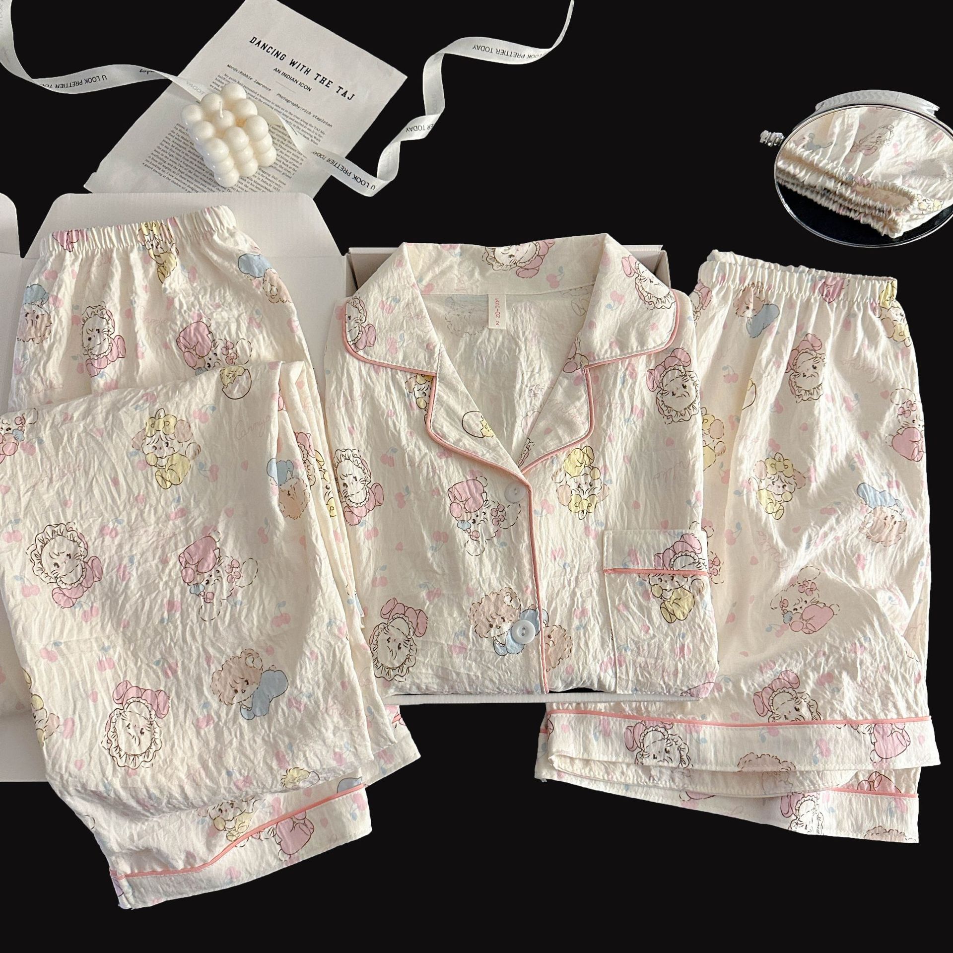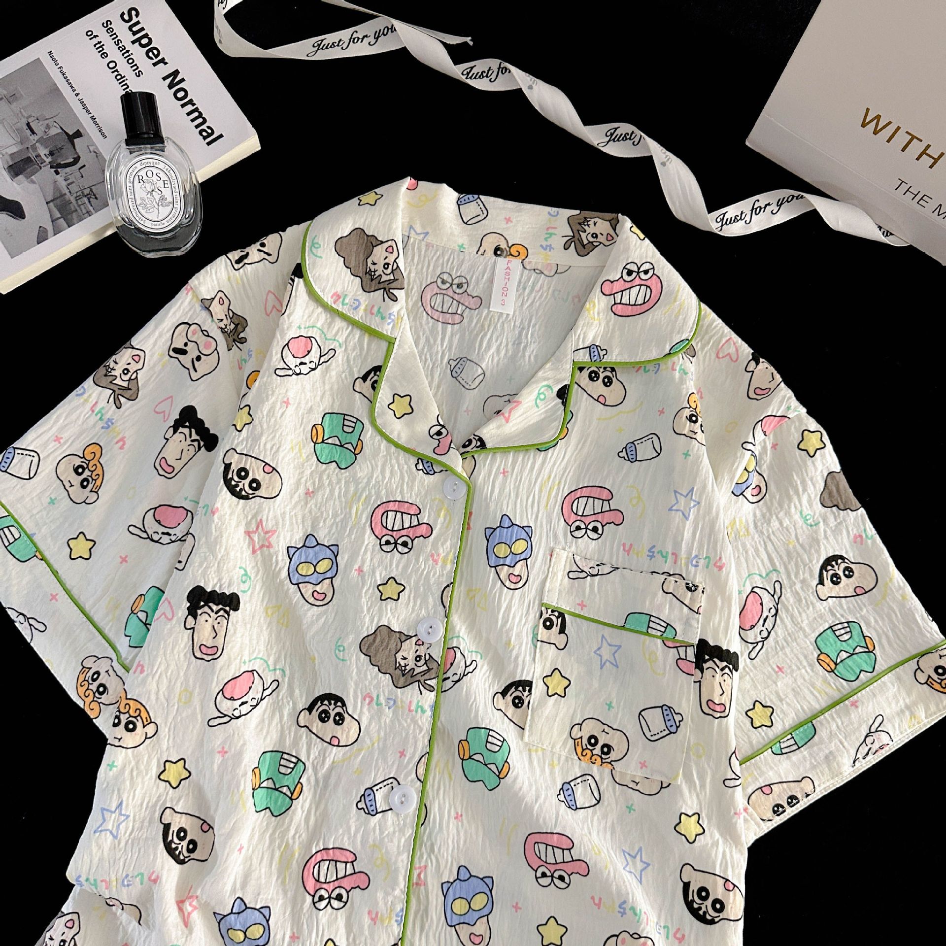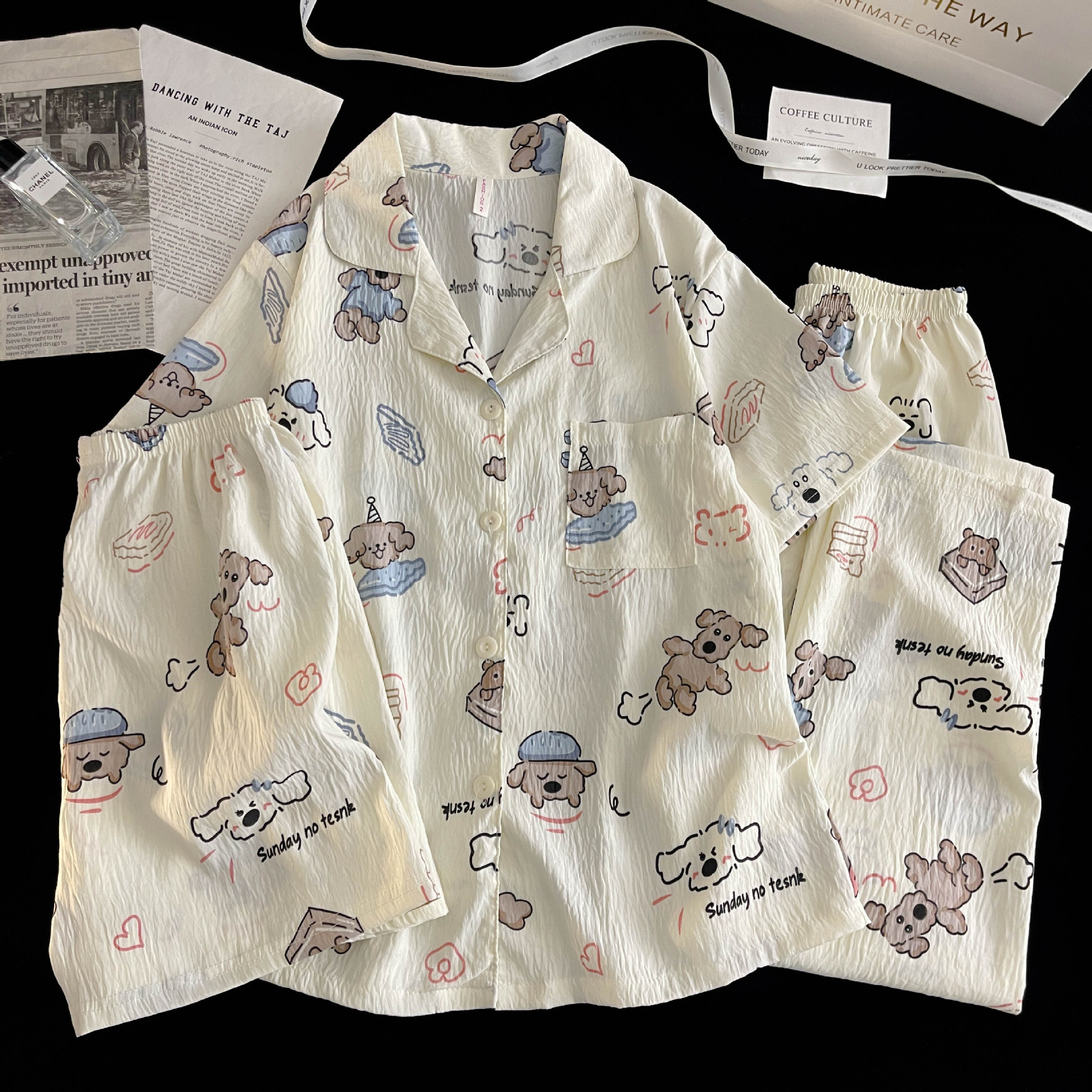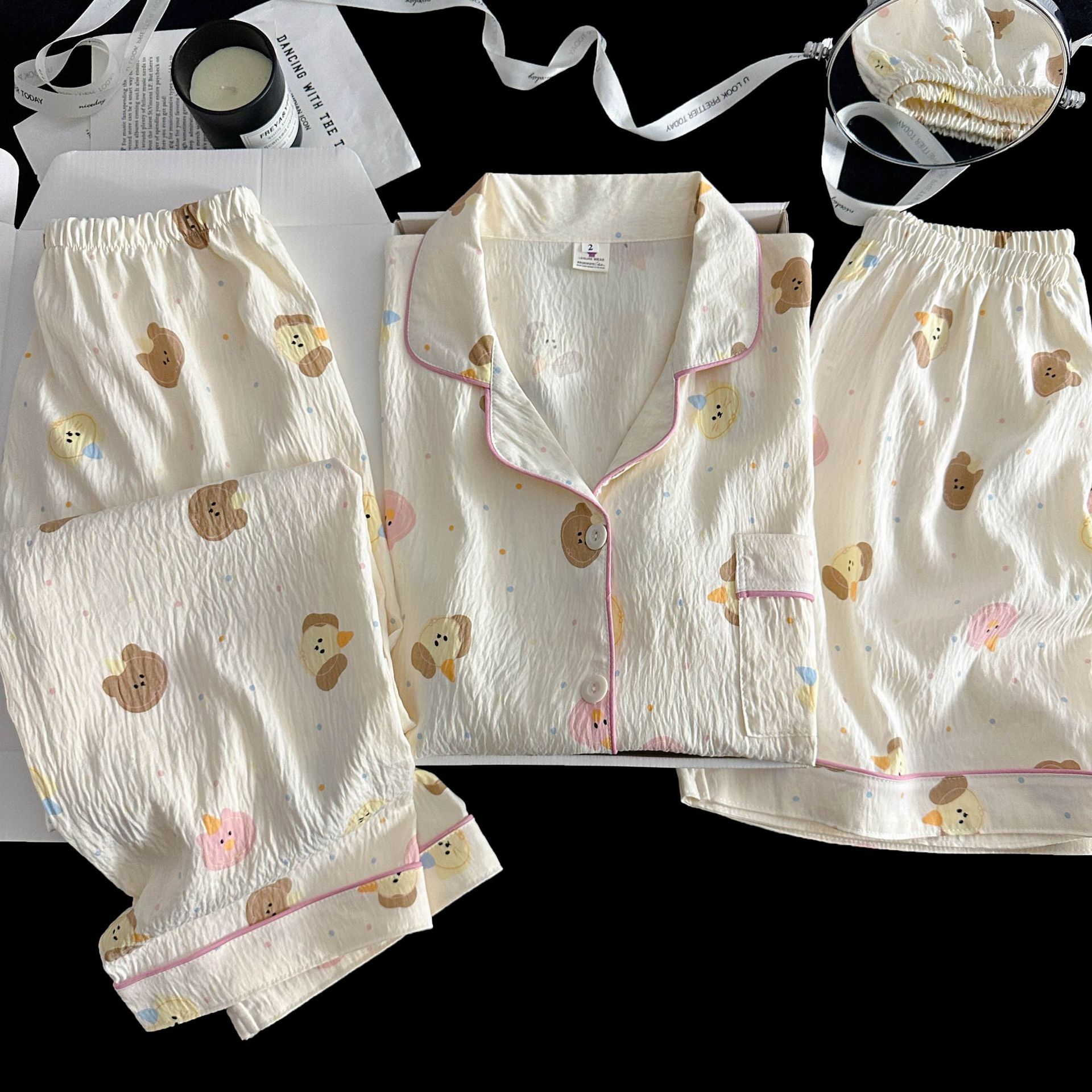 여성을위한 국경 간 도매 120G 잠옷 여름 귀여운 달콤한 만화 Xiaoxin 부모 옷깃 반팔 바지 홈웨어스토어 가기