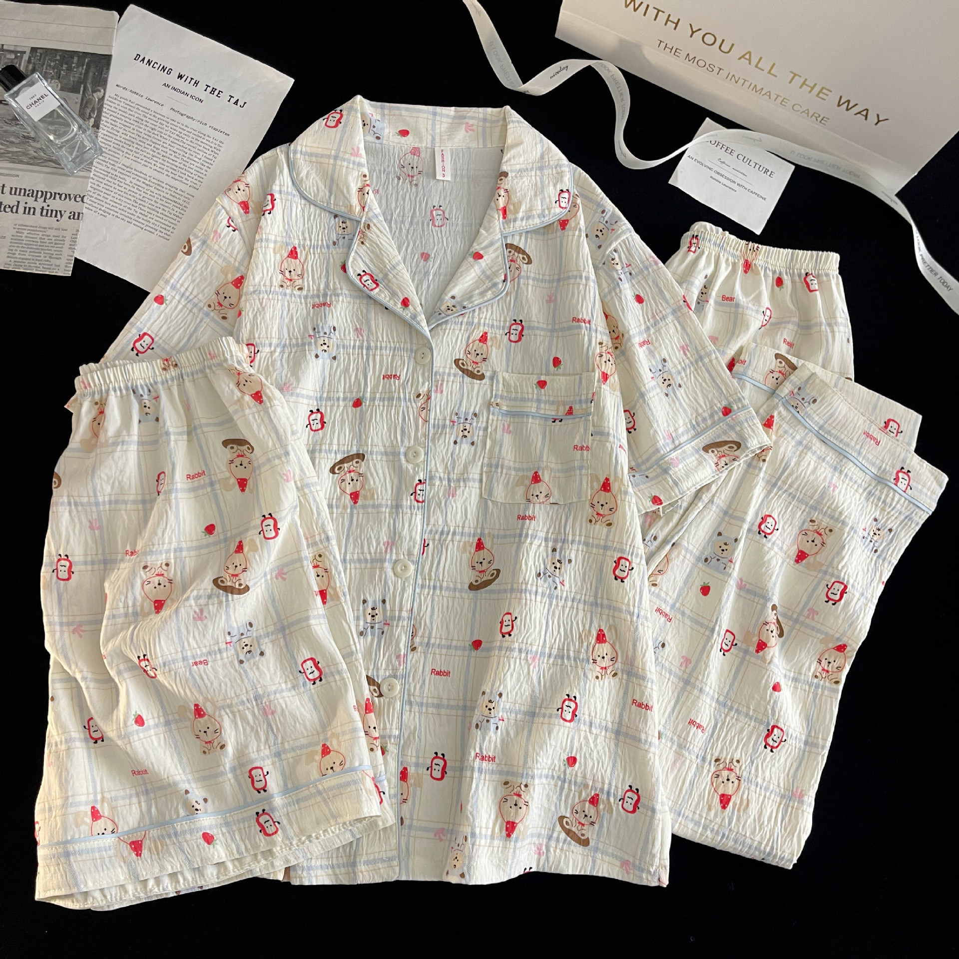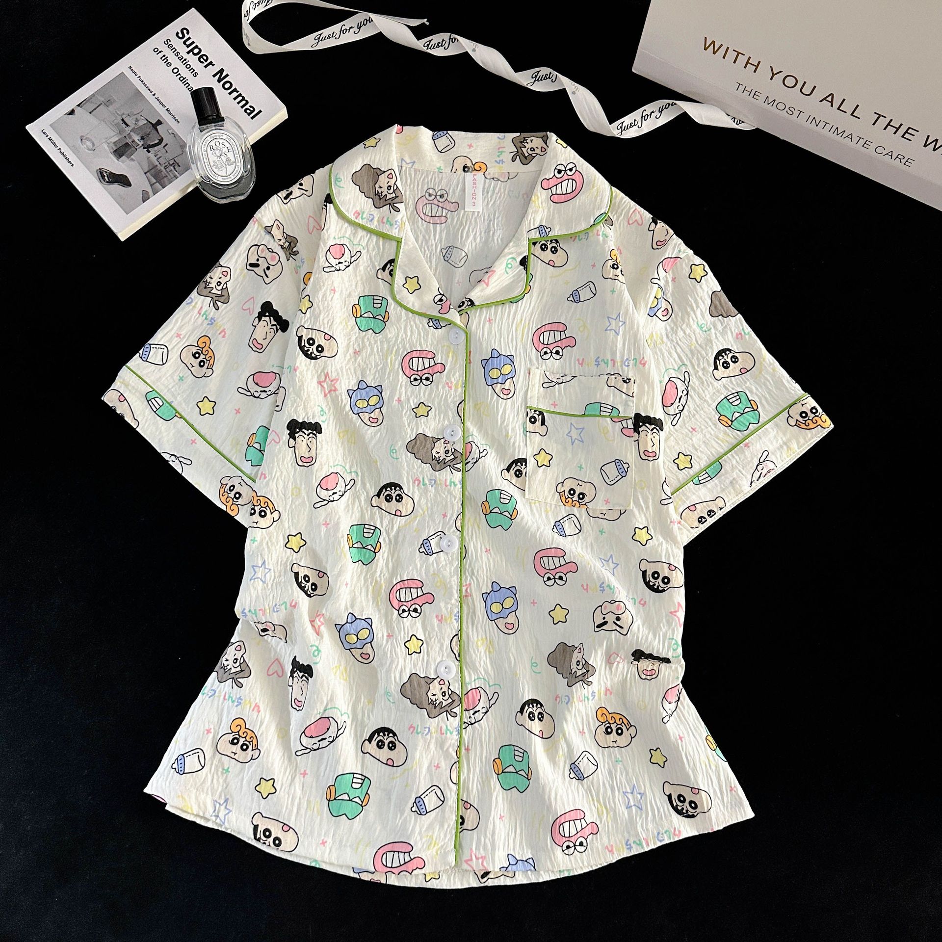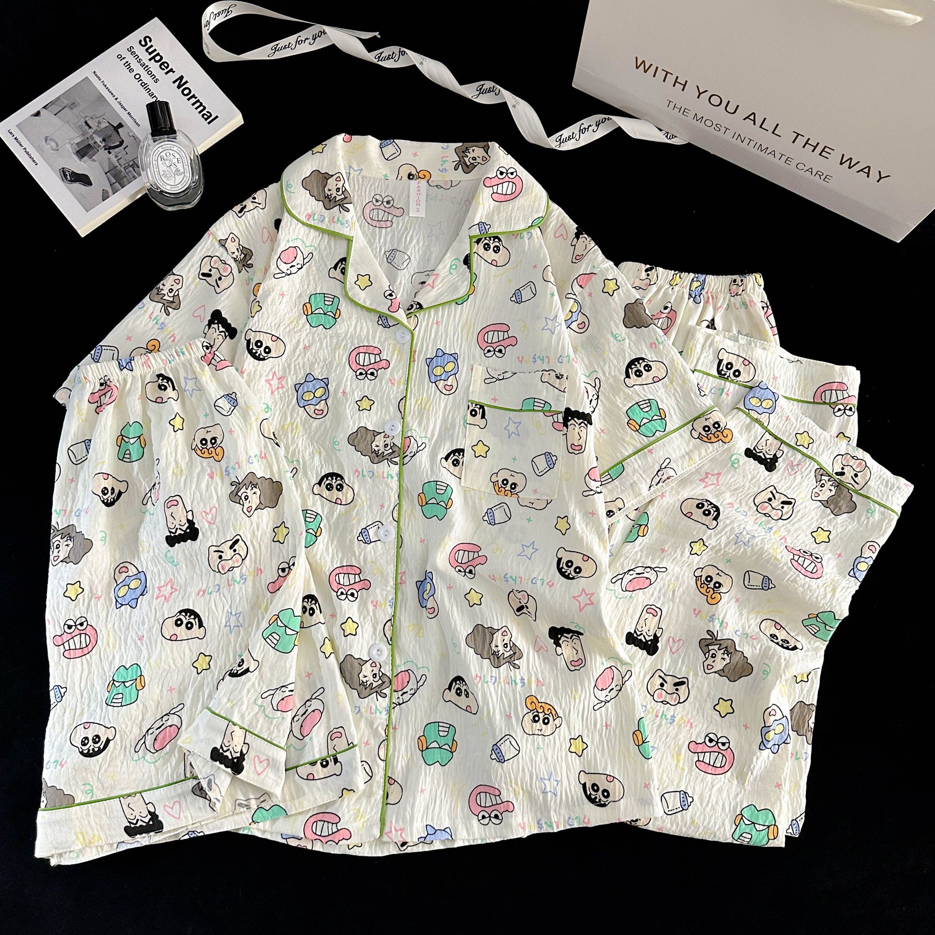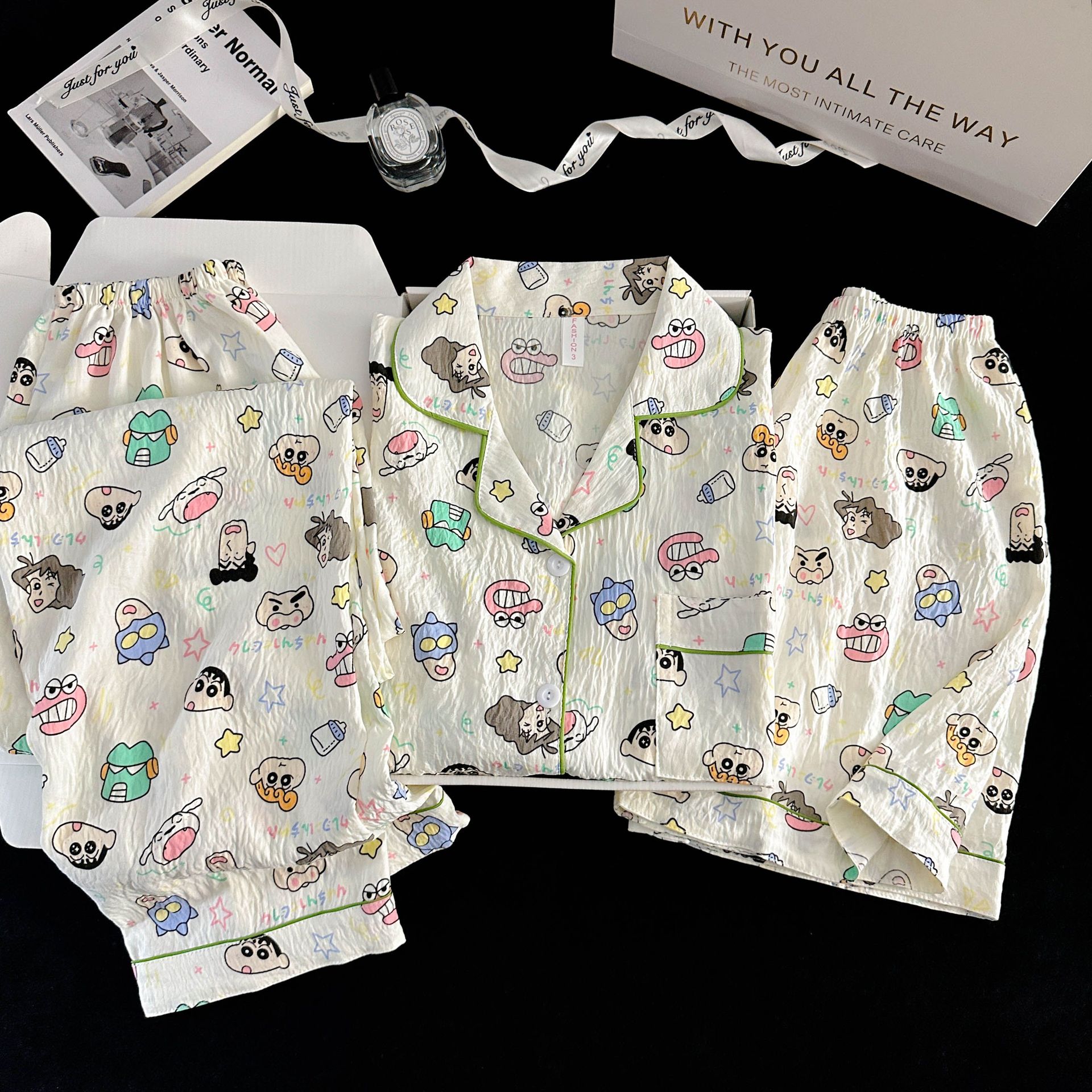 여성을위한 국경 간 도매 120G 잠옷 여름 귀여운 달콤한 만화 Xiaoxin 부모 옷깃 반팔 바지 홈웨어스토어 가기
