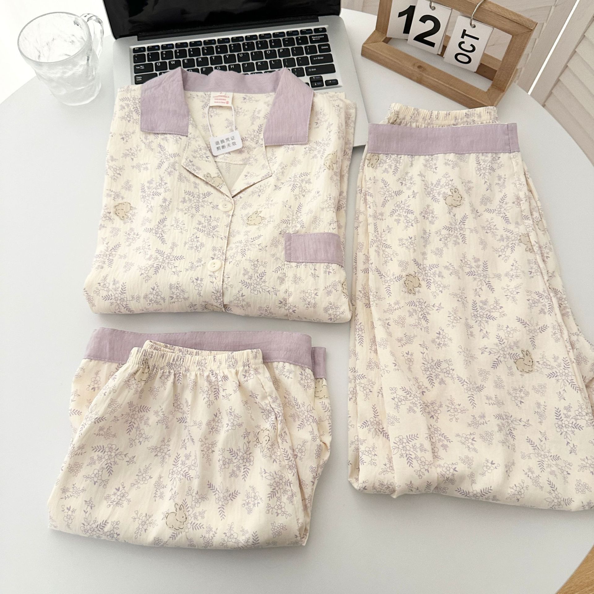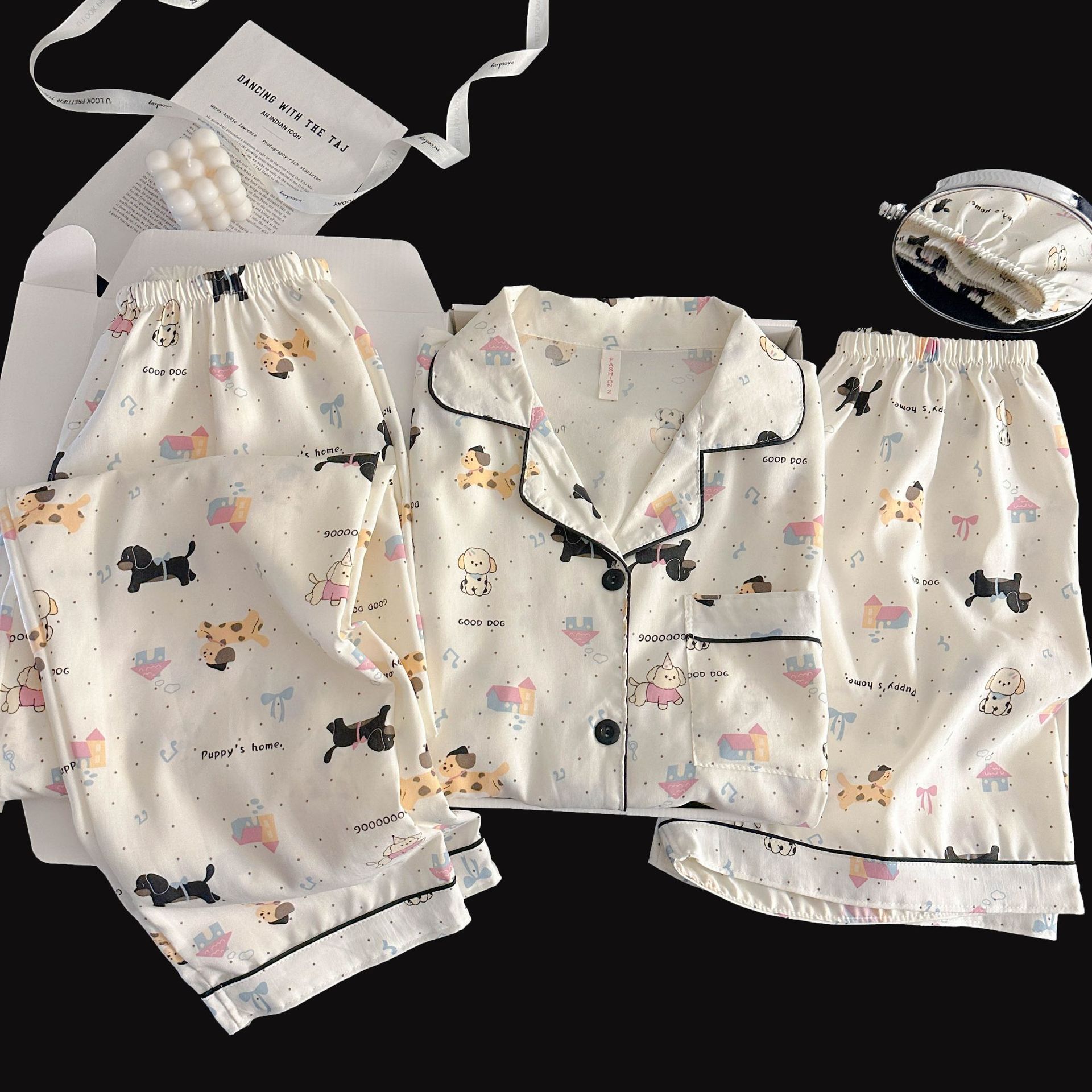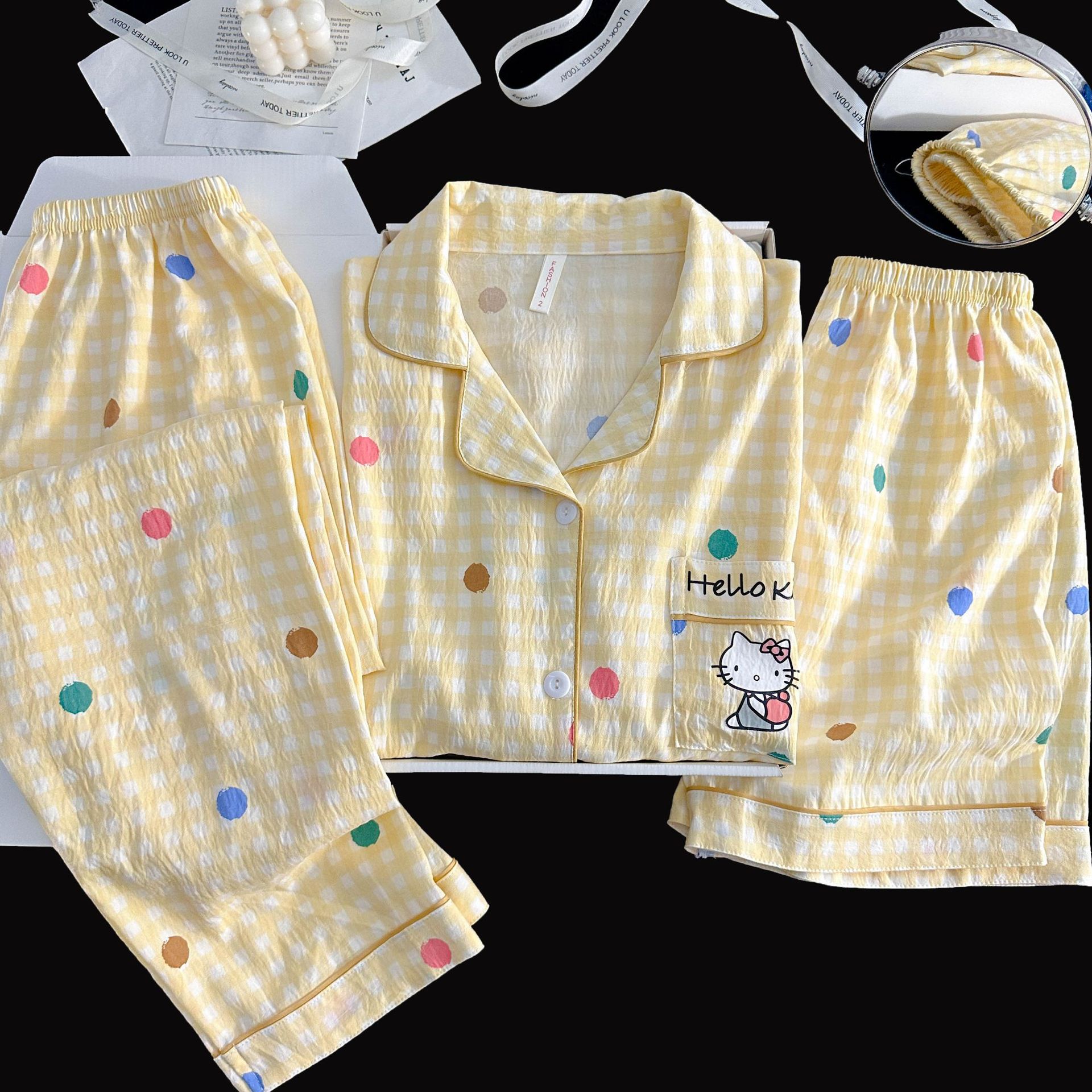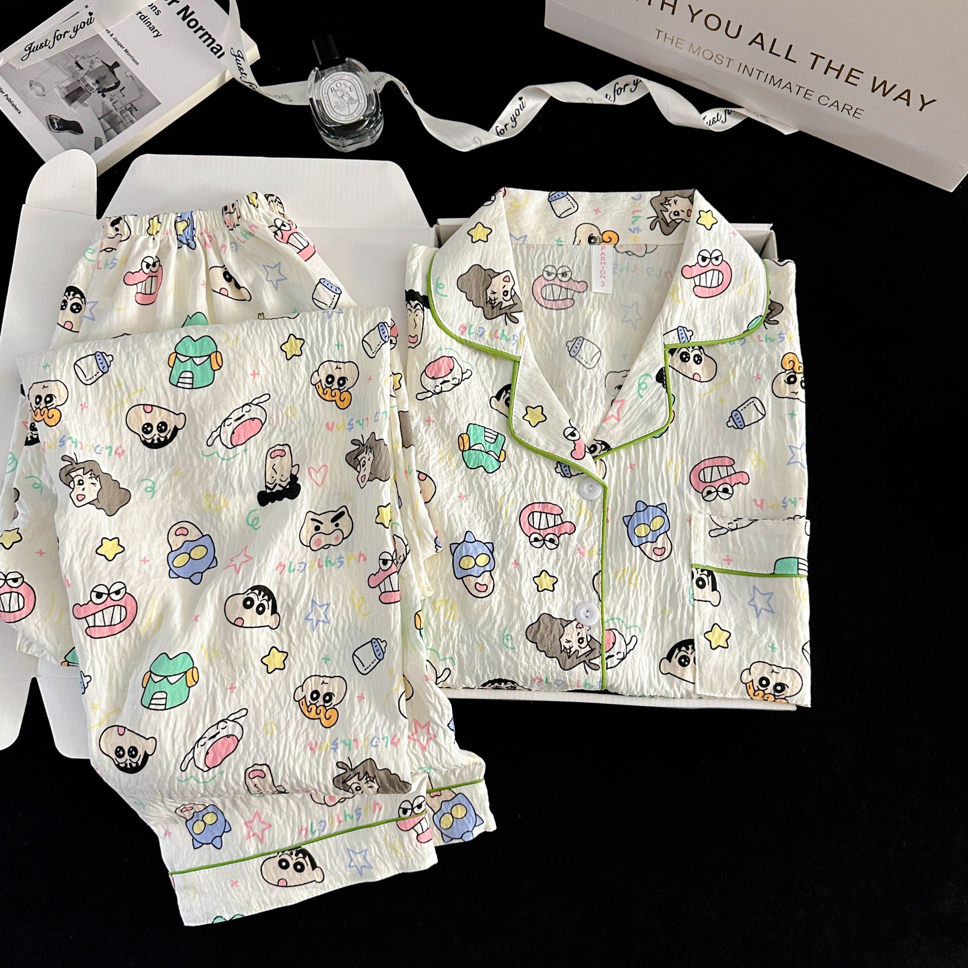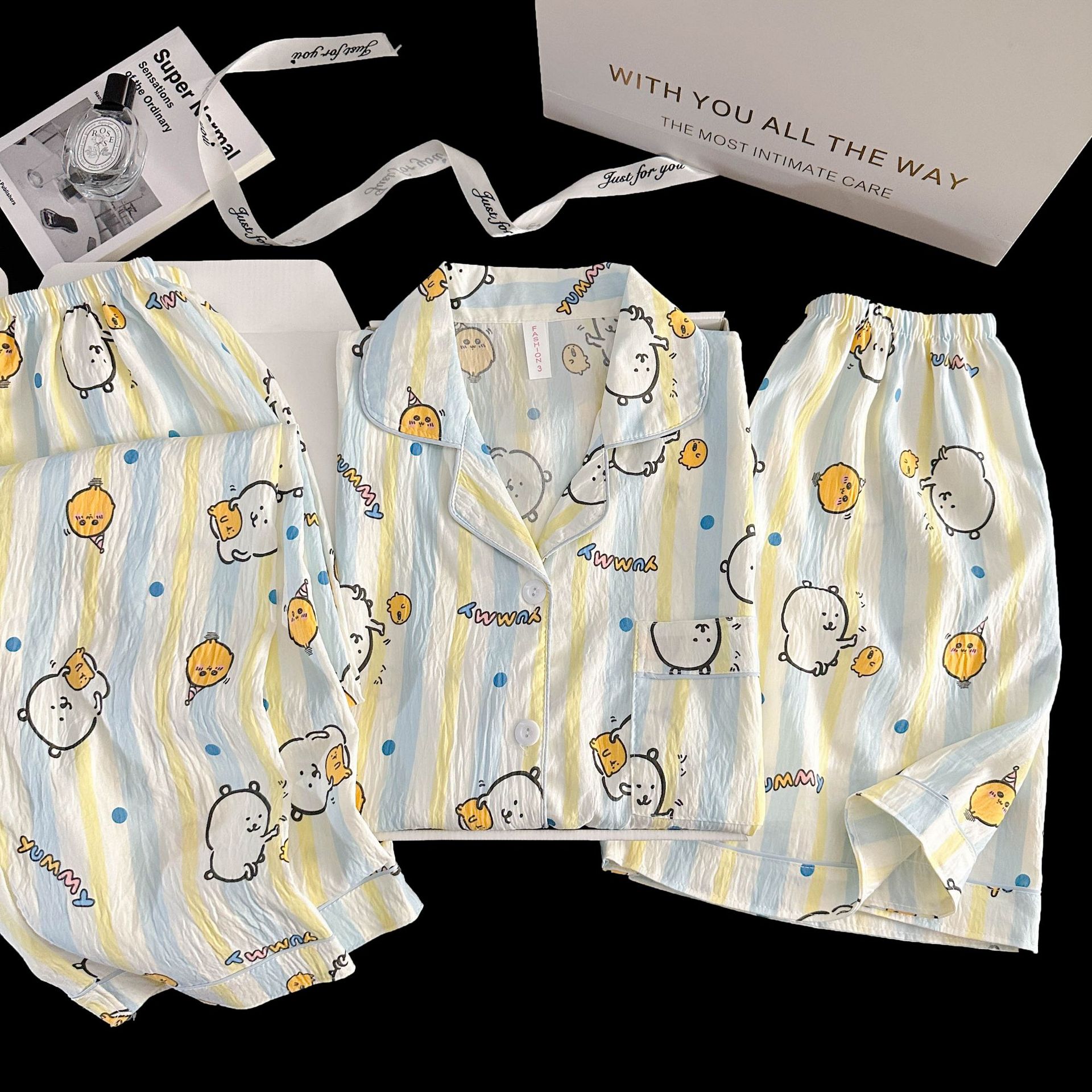 여성을위한 국경 간 도매 120G 잠옷 여름 귀여운 달콤한 만화 Xiaoxin 부모 옷깃 반팔 바지 홈웨어스토어 가기