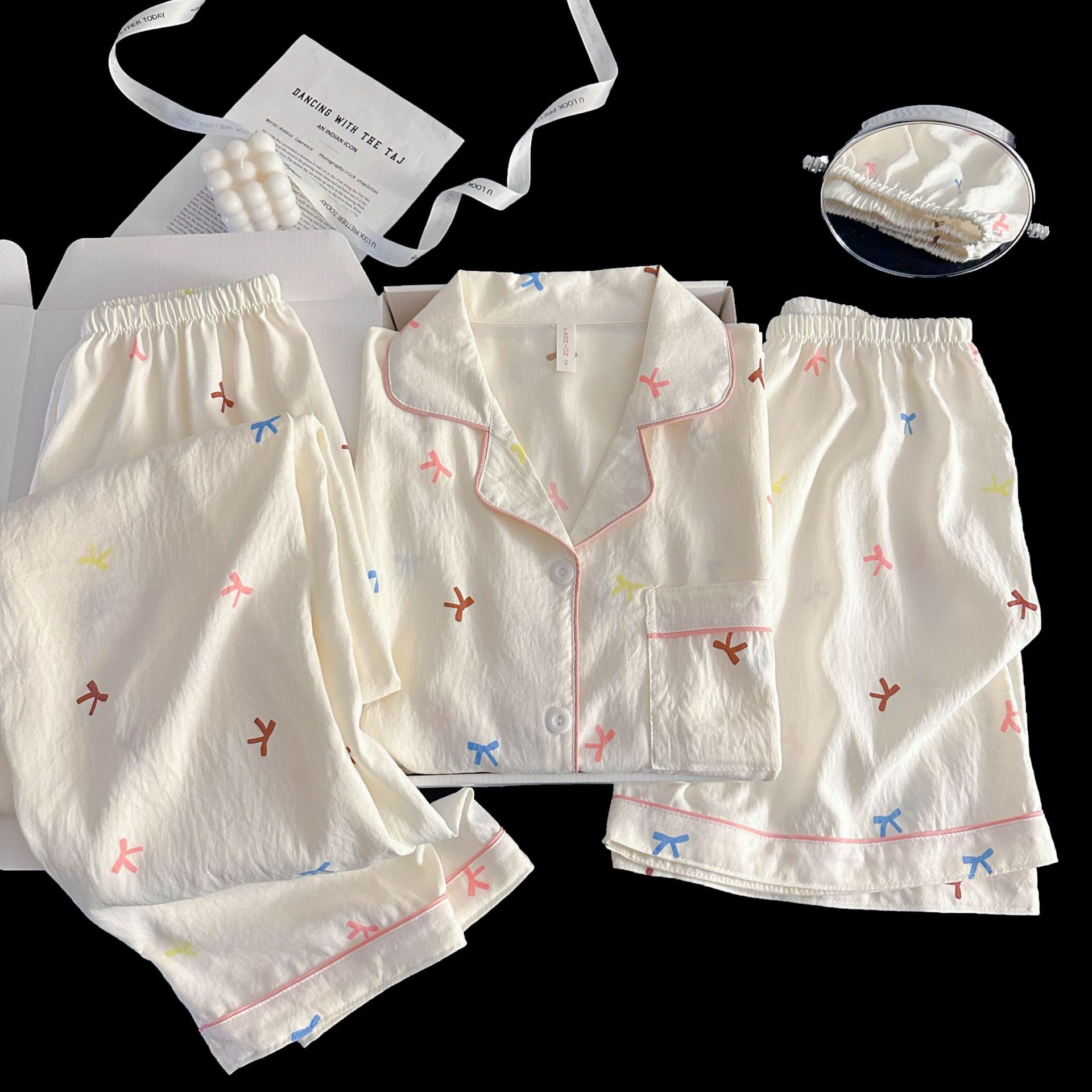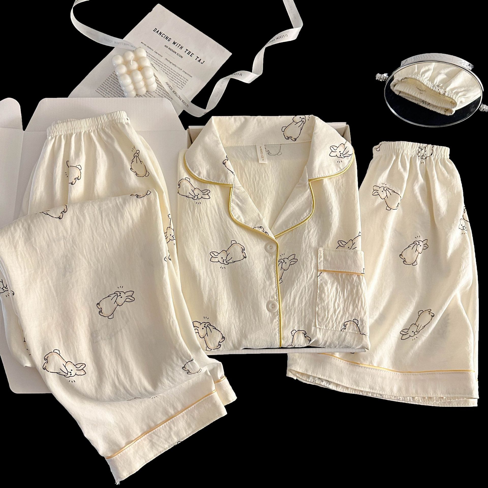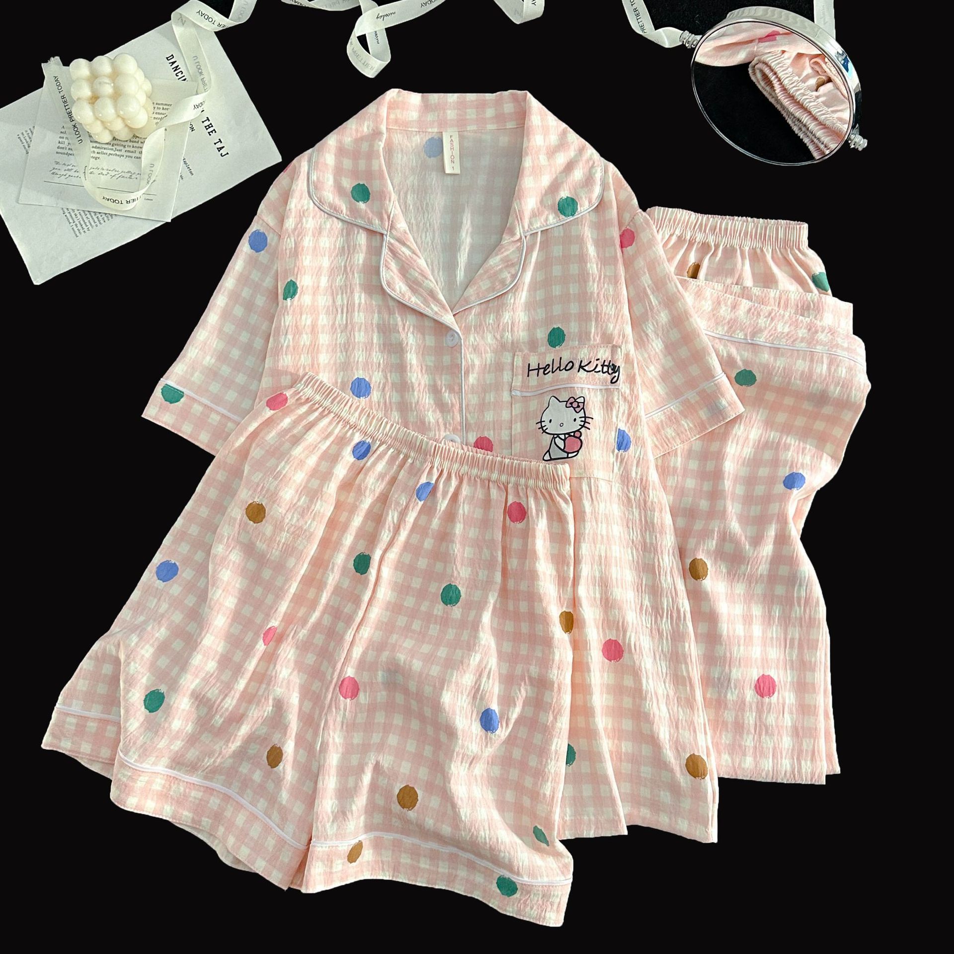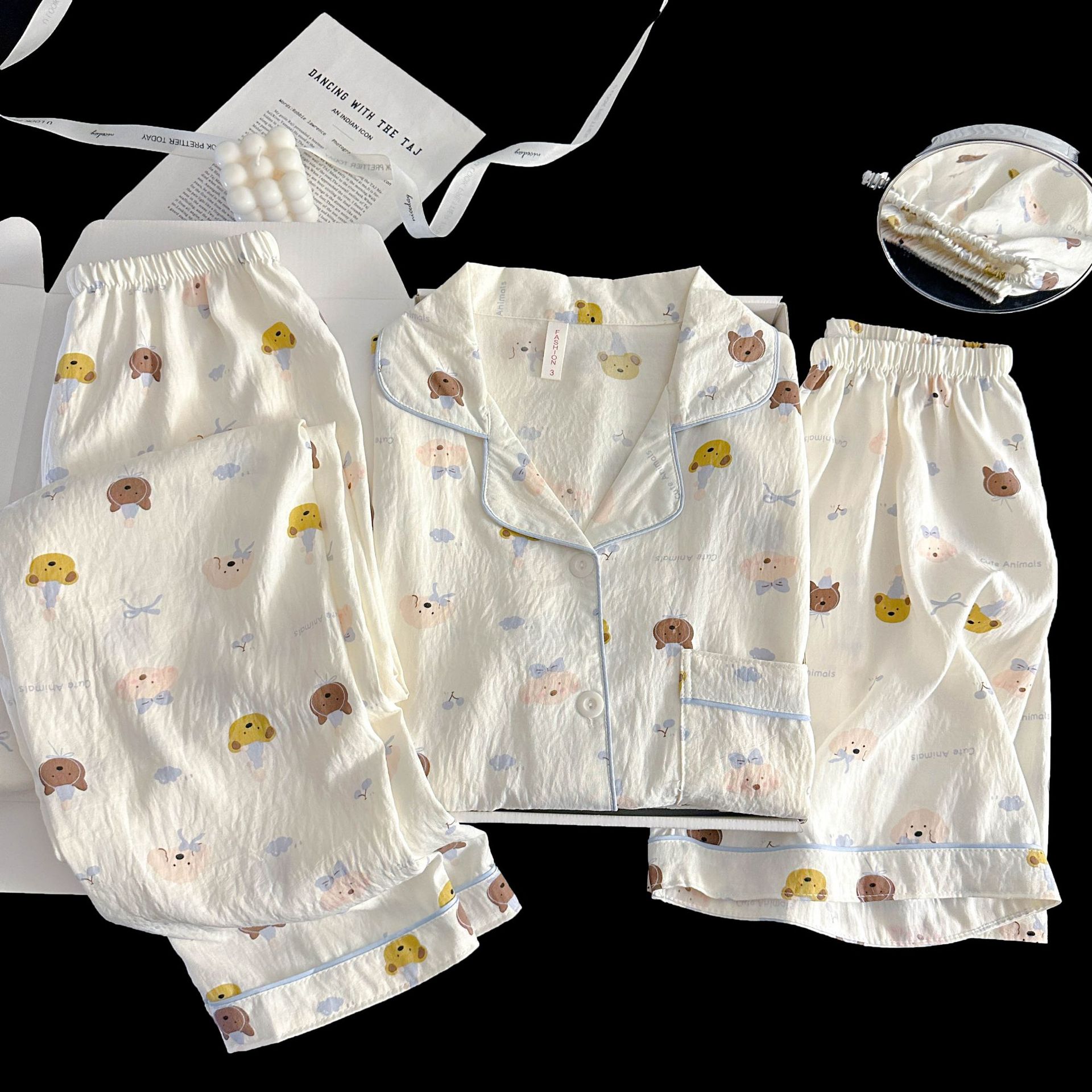 여성을위한 국경 간 도매 120G 잠옷 여름 귀여운 달콤한 만화 Xiaoxin 부모 옷깃 반팔 바지 홈웨어스토어 가기