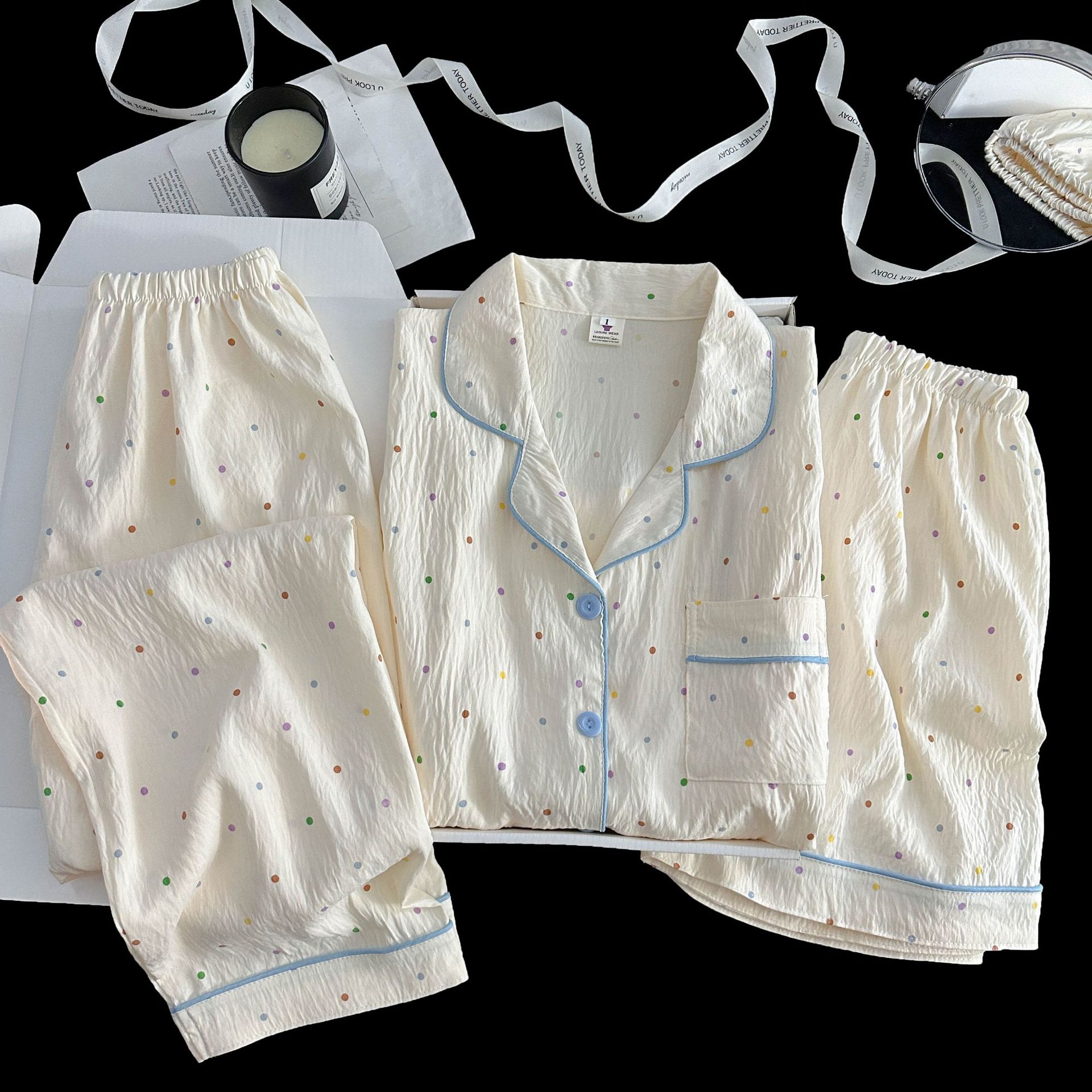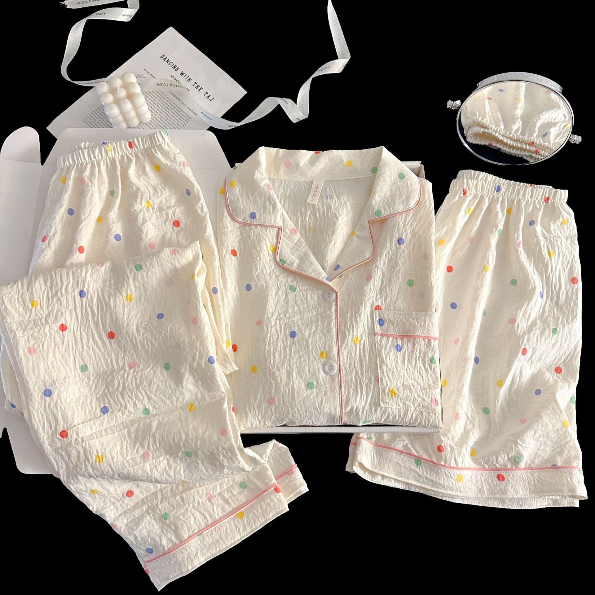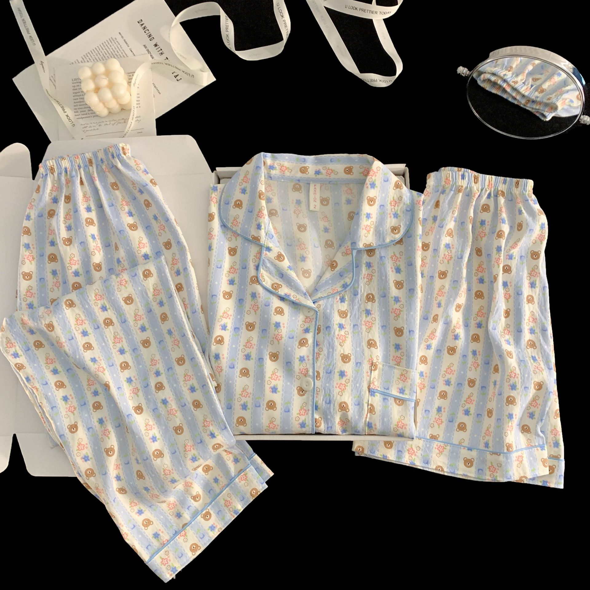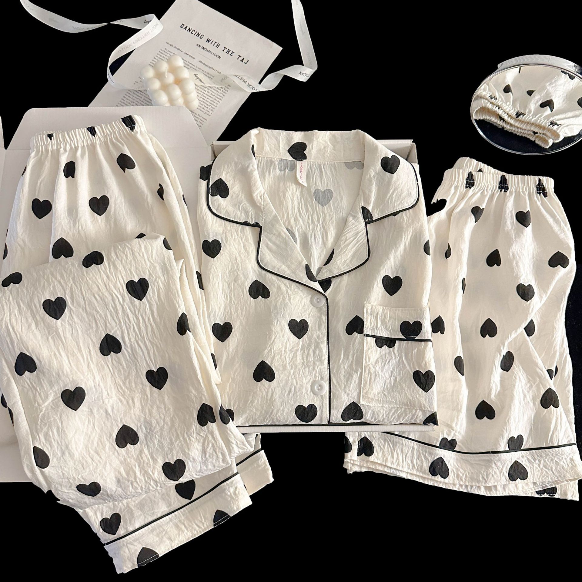 여성을위한 국경 간 도매 120G 잠옷 여름 귀여운 달콤한 만화 Xiaoxin 부모 옷깃 반팔 바지 홈웨어스토어 가기