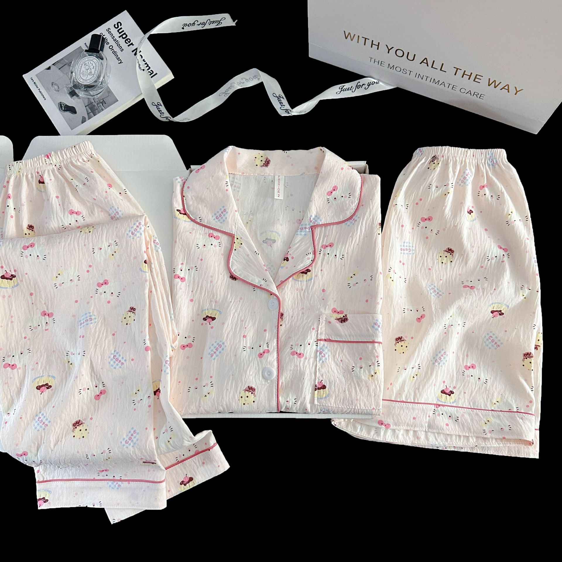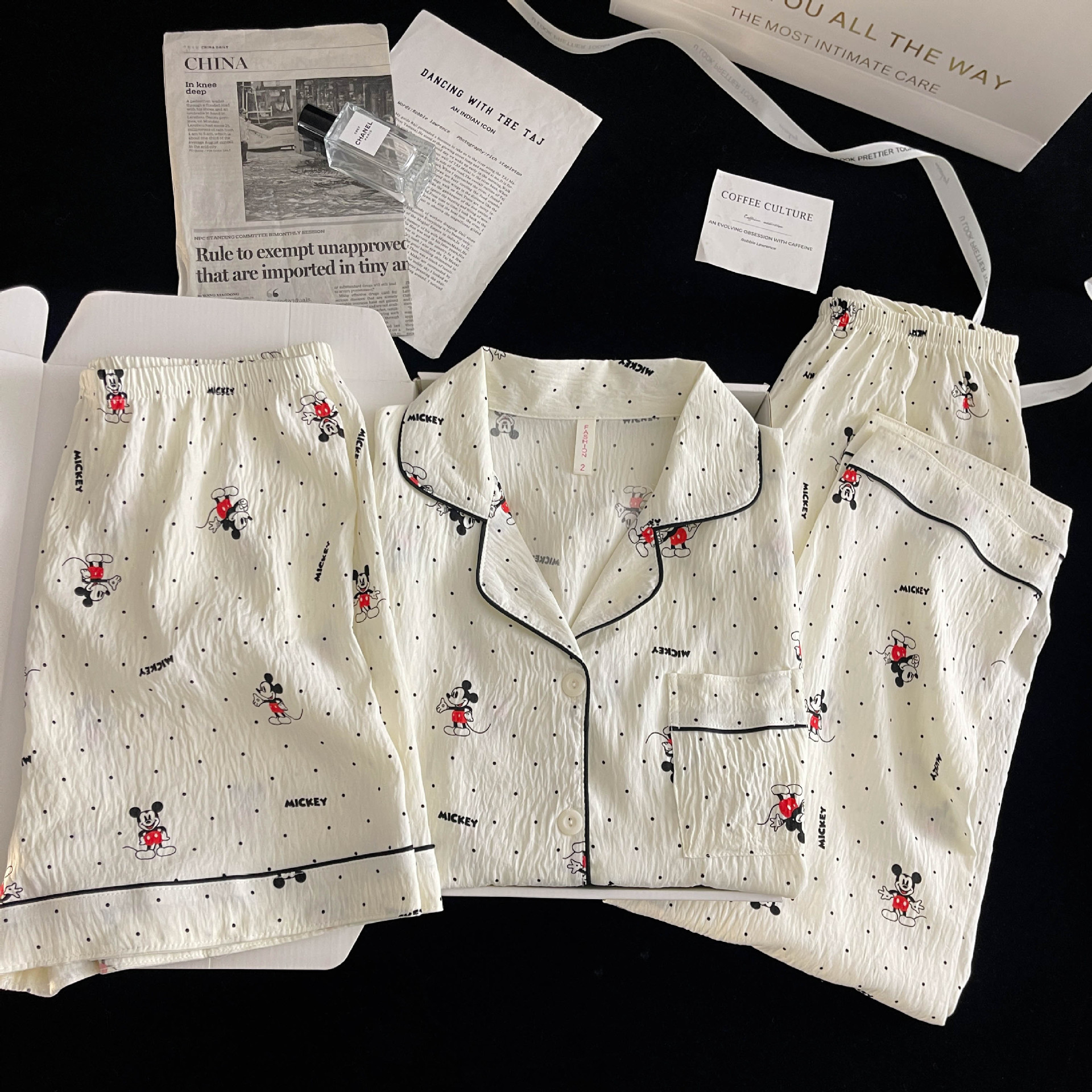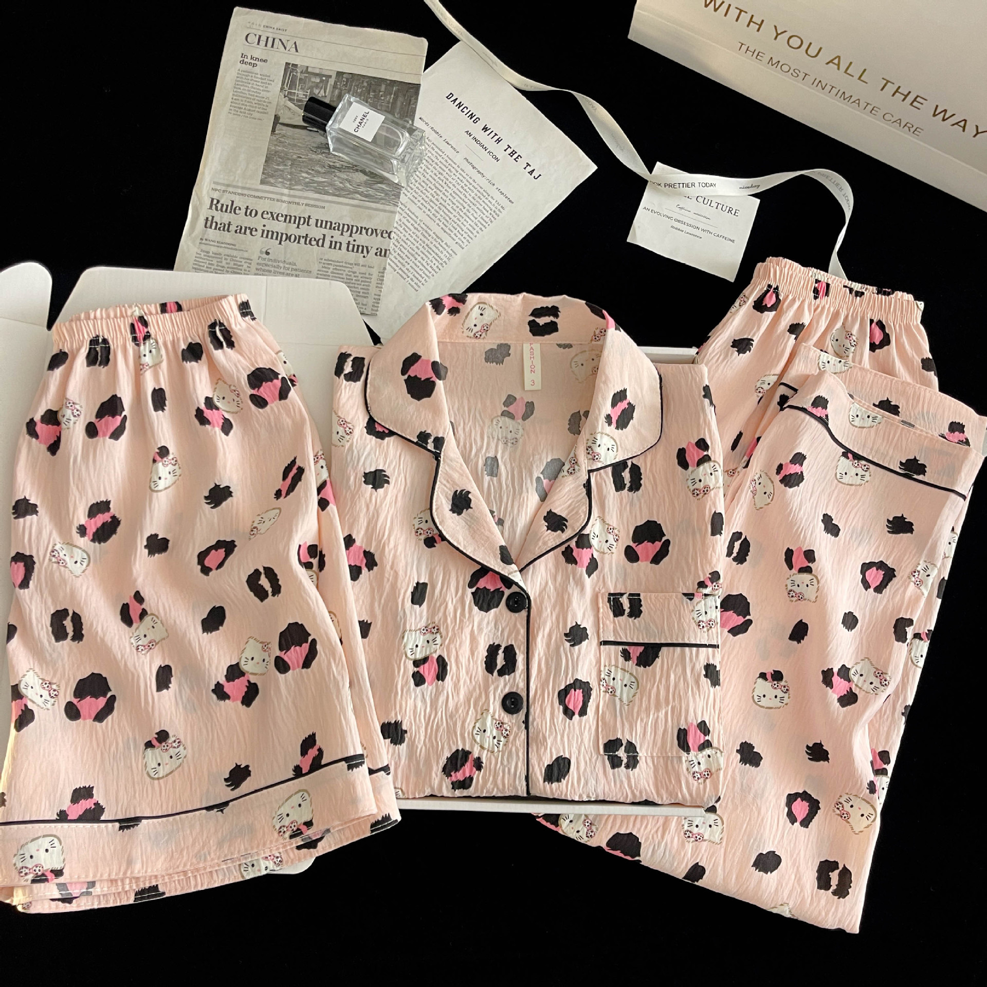 여성을위한 국경 간 도매 120G 잠옷 여름 귀여운 달콤한 만화 Xiaoxin 부모 옷깃 반팔 바지 홈웨어