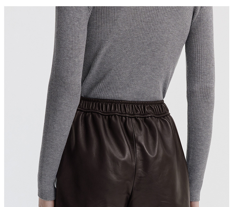 새로운 양가죽 가죽 짧은 여성의 2025 봄 느슨한 캐주얼 넓은 다리 바지 슬리밍 신발 및 부츠 증오 가죽 바지스토어 가기