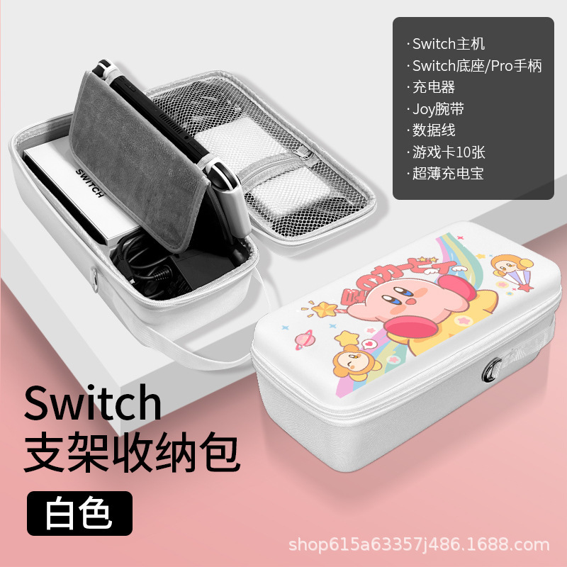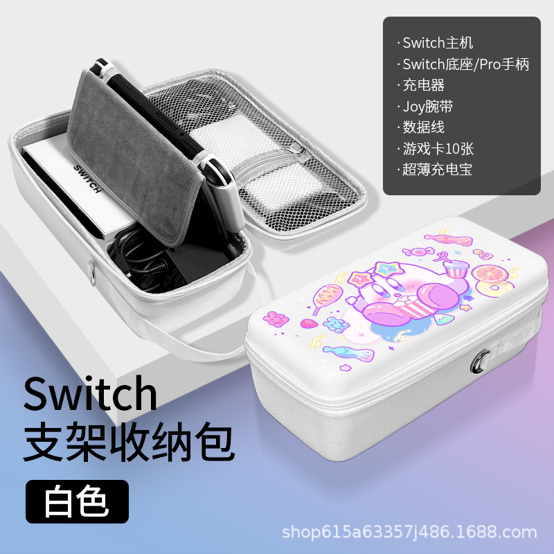 • 올레드 화이트 대형 수납가방 [충전기+베이스/프로손잡이 수납가능] 스탠드 내장*필름+캡 포함 [P7859 레인보우 커비]