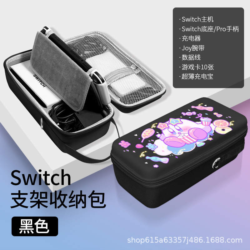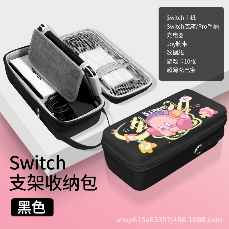 • 스위치 블랙 대용량 수납가방 [충전기+베이스/프로핸들 수납가능] 스탠드 내장 *필름+캡 포함 [P7859 레인보우 커비]