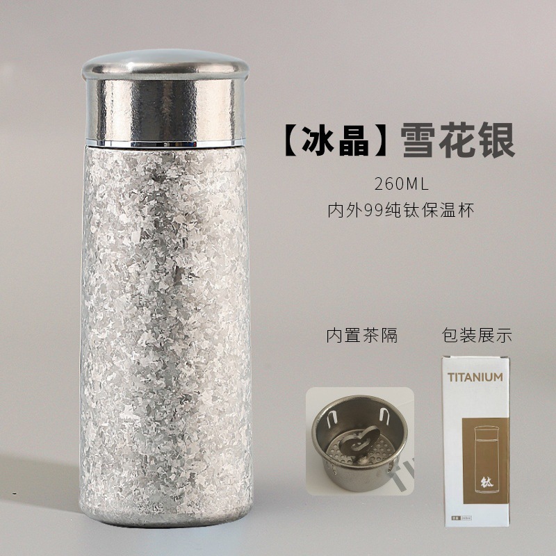 순수한 티타늄 보온병 컵 260ml 휴대용 포켓 컵 버섯 머리 컵 얼음 크리스탈 티타늄 향기 차 건강 컵 도매