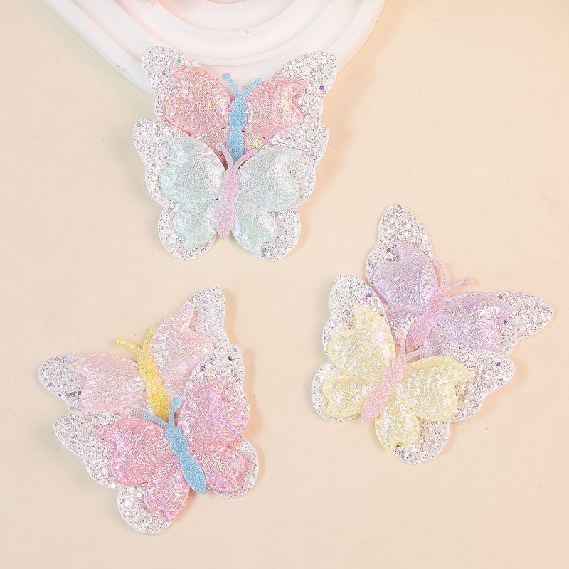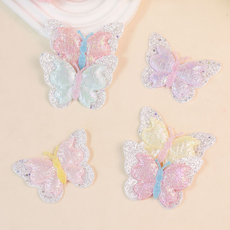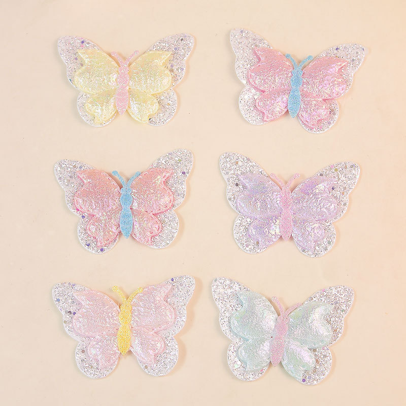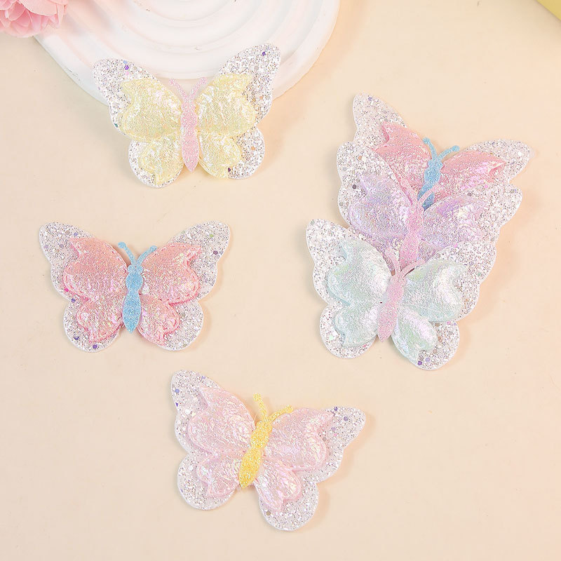 【名称】儿童布艺蝴蝶配件超可爱亮片服饰鞋包辅料装饰充棉多层diy半成品