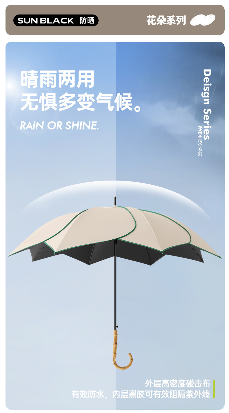 레트로 대나무 꽃 직선 우산, 비 또는 빛 우산, 자외선 차단, 여성용 비닐 자외선 차단제, 여성용 제조업체 재고 있음스토어 가기