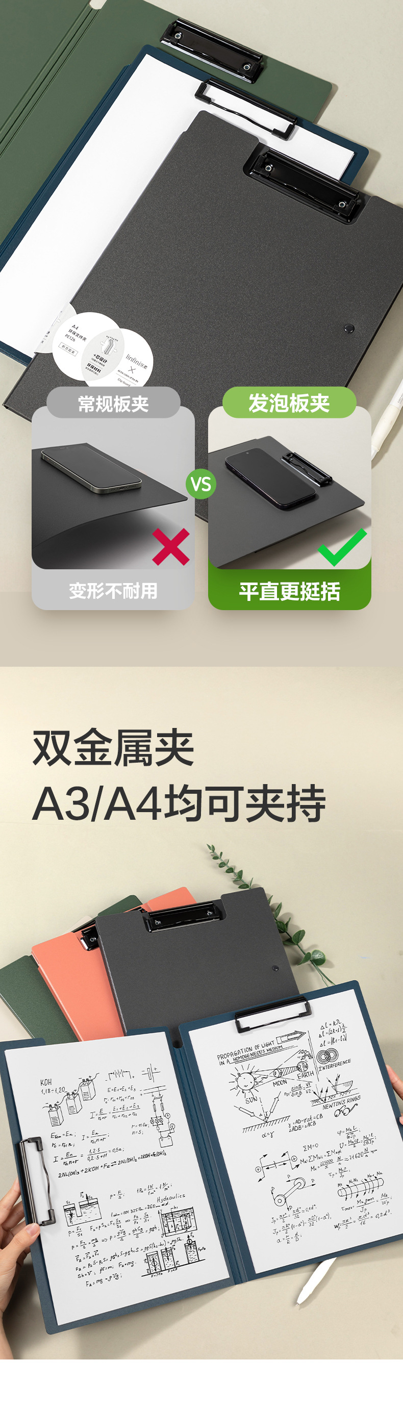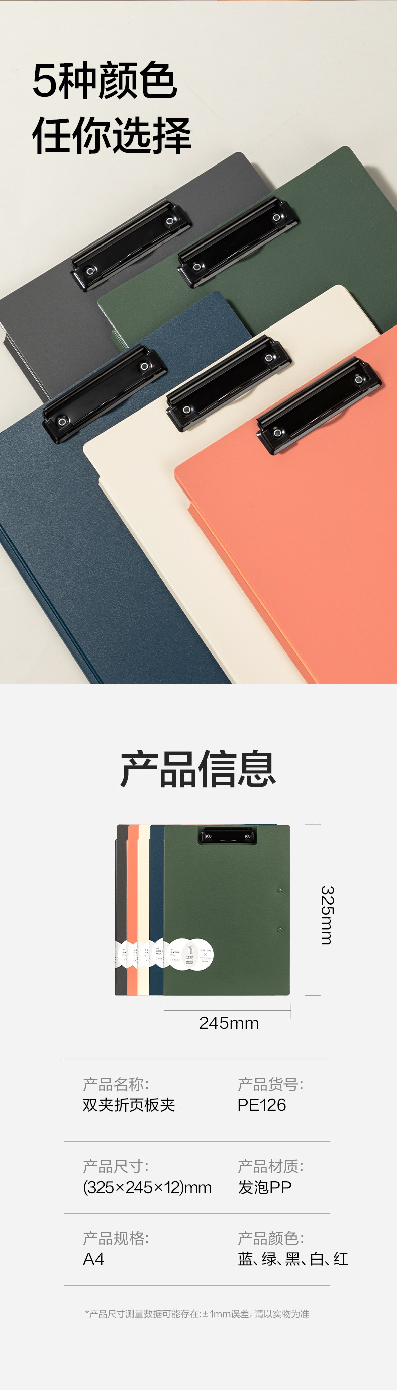 델리 PE126 보드 클립 A4 다기능 폴더 정보 폴더 가로 쓰기 보드 이중 클램프 접이식 A3