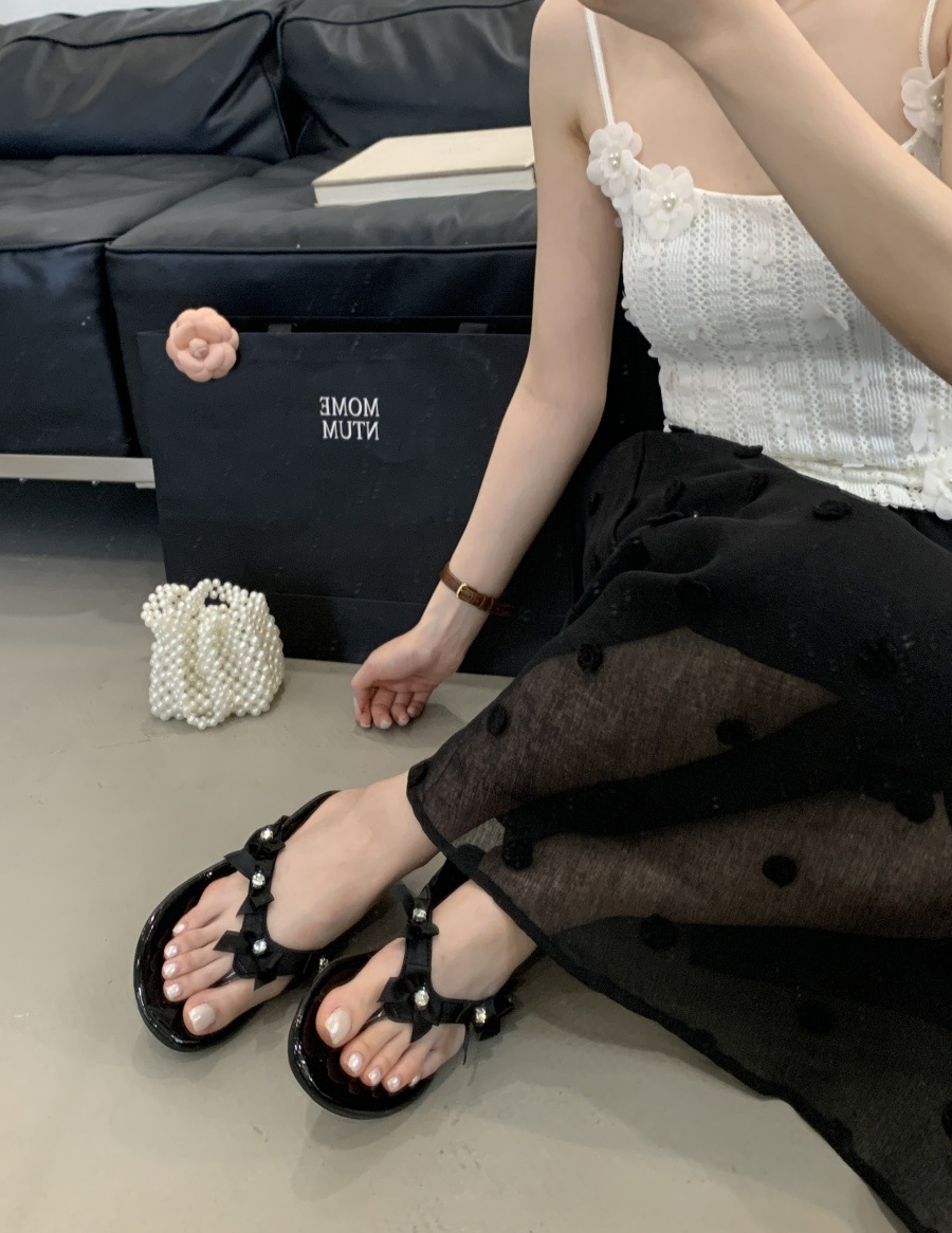 2025년 여름 새로운 패션 다재다능한 프렌치 보우 오픈 토우 두꺼운 굽 슬리퍼 여성용 아우터웨어스토어 가기
