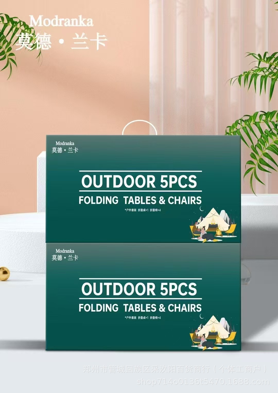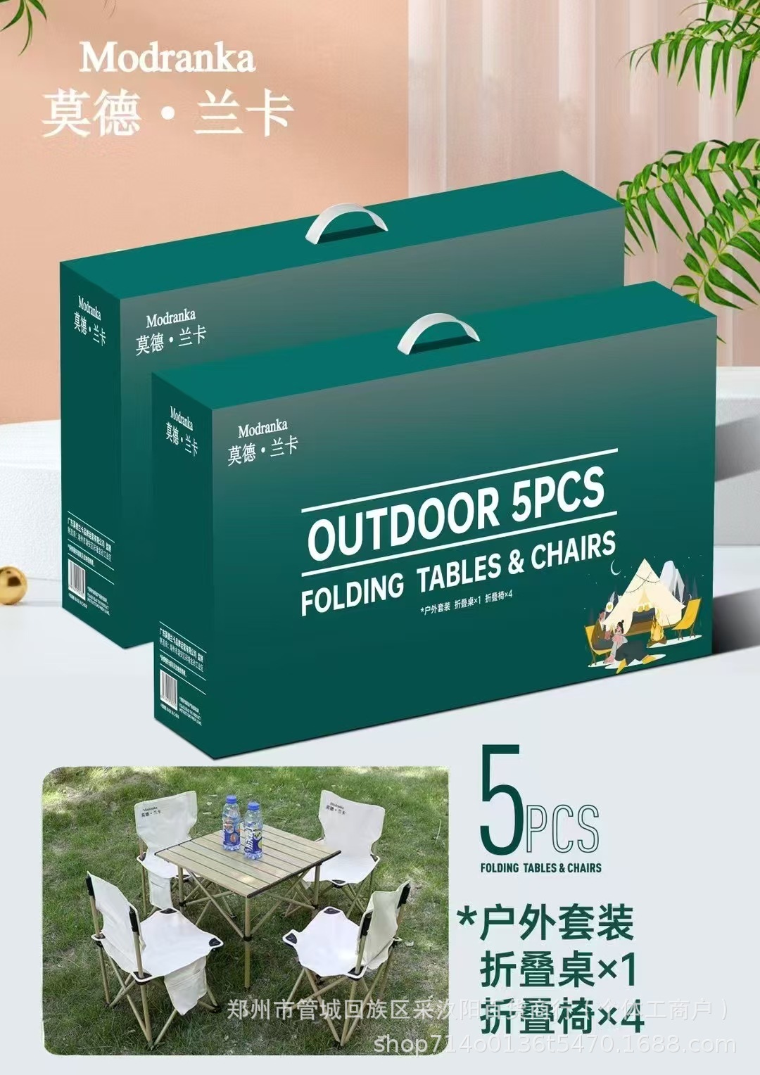 • 야외용 접이식 테이블과 의자 5개 세트/박스당 4세트