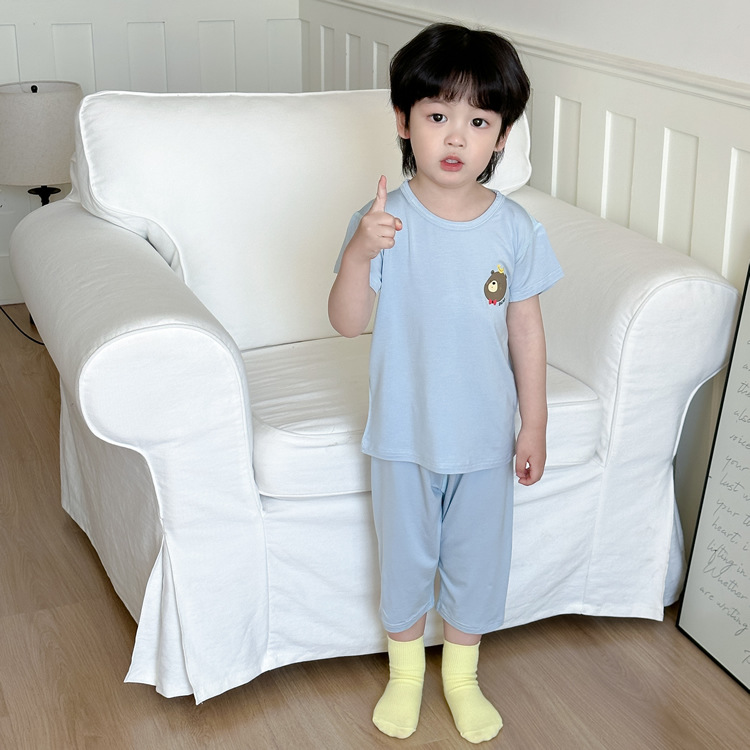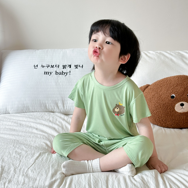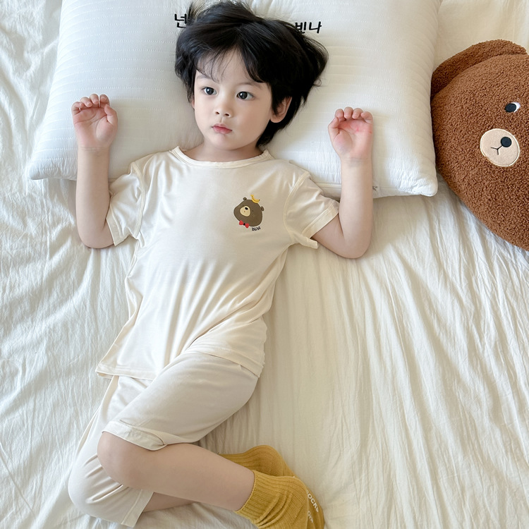 아동 잠옷 여름 베이비 리오셀 가정복 소년과 어린이 모달 얇은 반팔 에어컨 양복