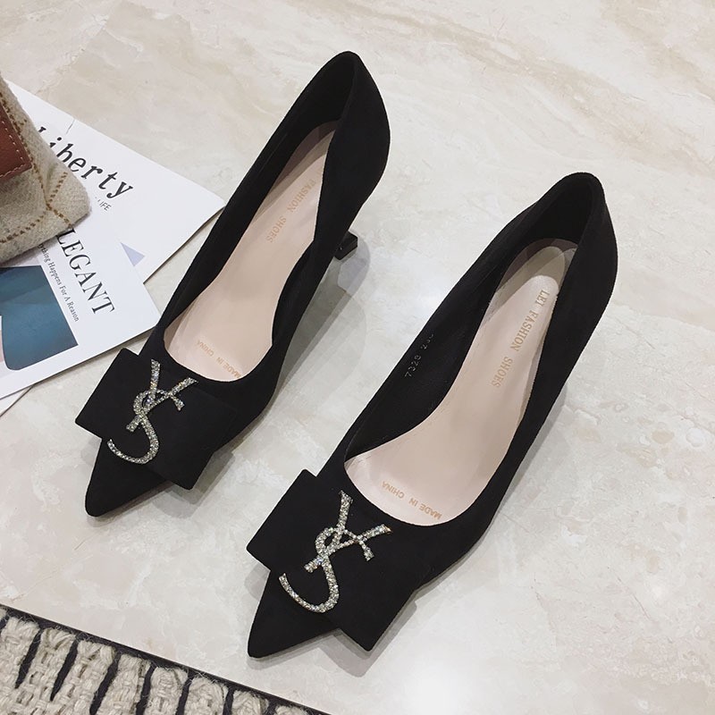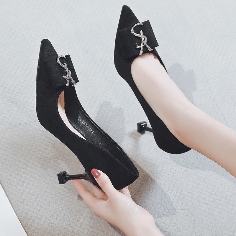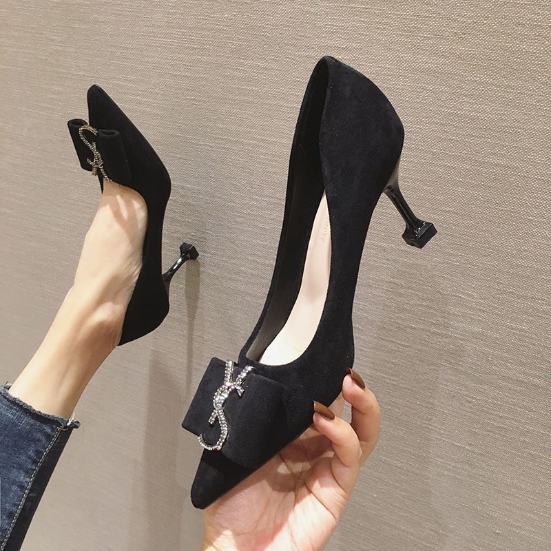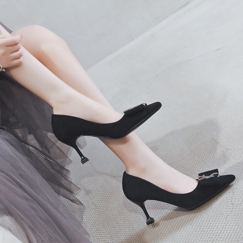 봄 여름 여성용 대외 무역 크로스보더 아름다운 스웨이드 하이힐, 스틸레토 힐 작업화, 뾰족한 프렌치 스타일의 고급 신발스토어 가기