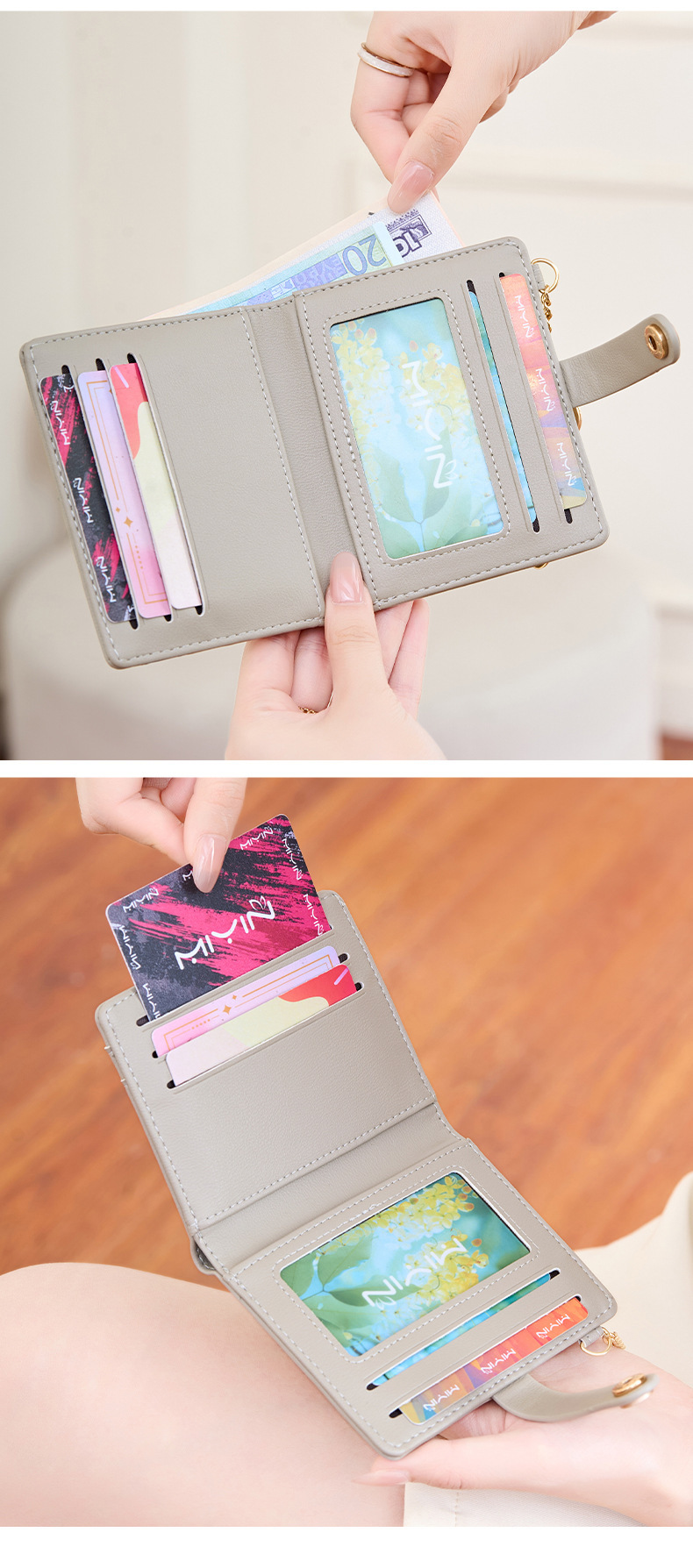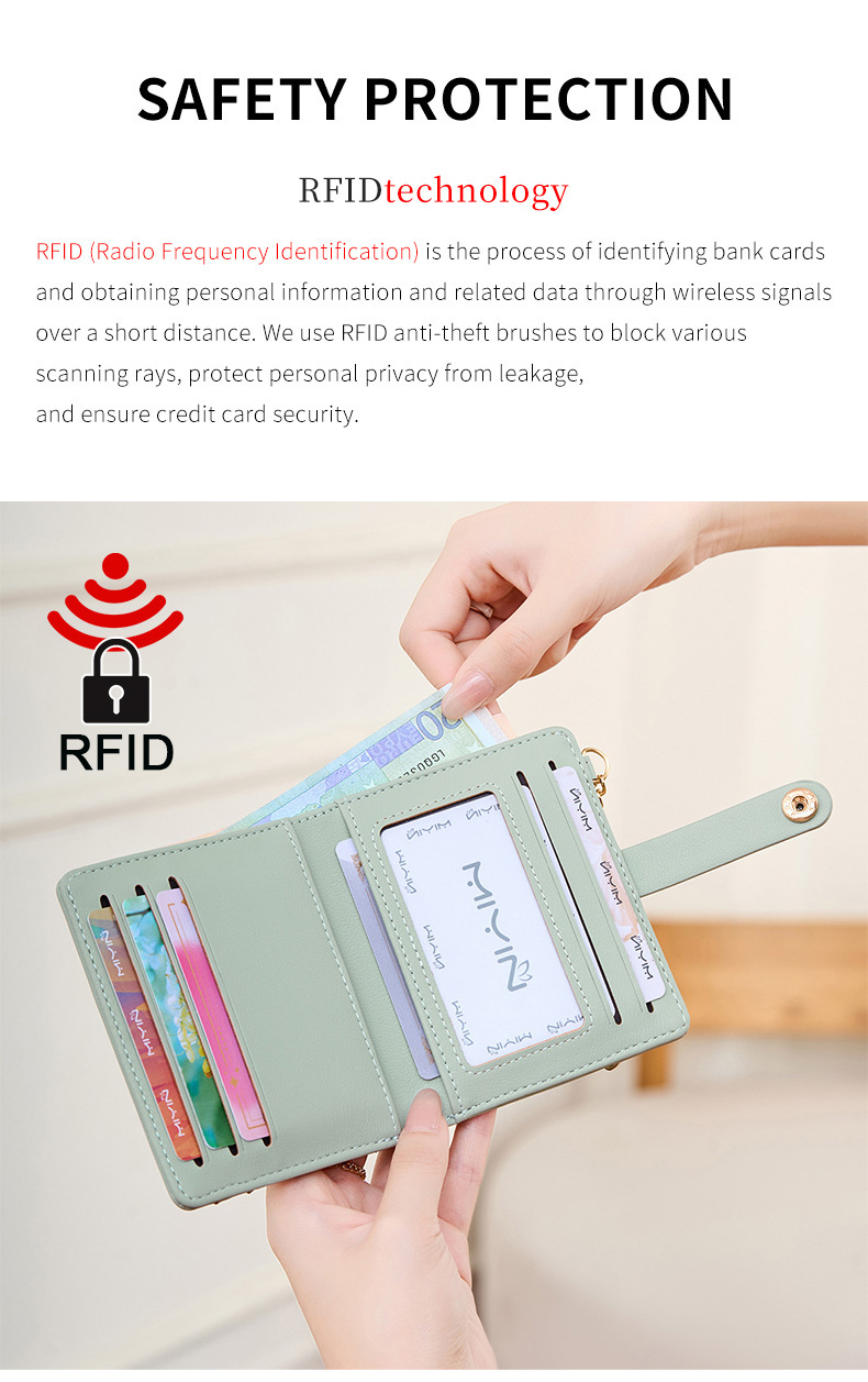 여성용 초박형 이중 지갑 RFID 차폐 다기능 신용 카드 가방 간단하고 컴팩트하며 휴대용 학생 동전 지갑