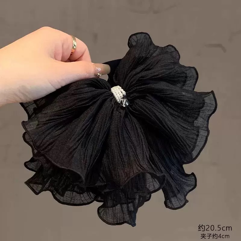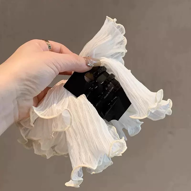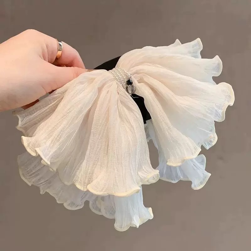 매일의 기질 슈퍼 페어리 부드러운 더블 레이어 메쉬 포니 테일 클립 모리 스타일 달콤한 하이 엔드 진주 주름 잡아 헤어 액세서리