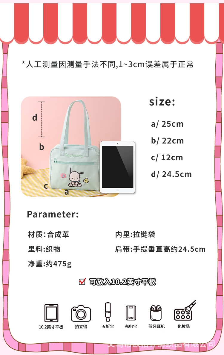 프랑스 산리오 정품 승인 긴 어깨 끈 어깨 가방 대용량 복고풍 통근 필요한 볼링 가방