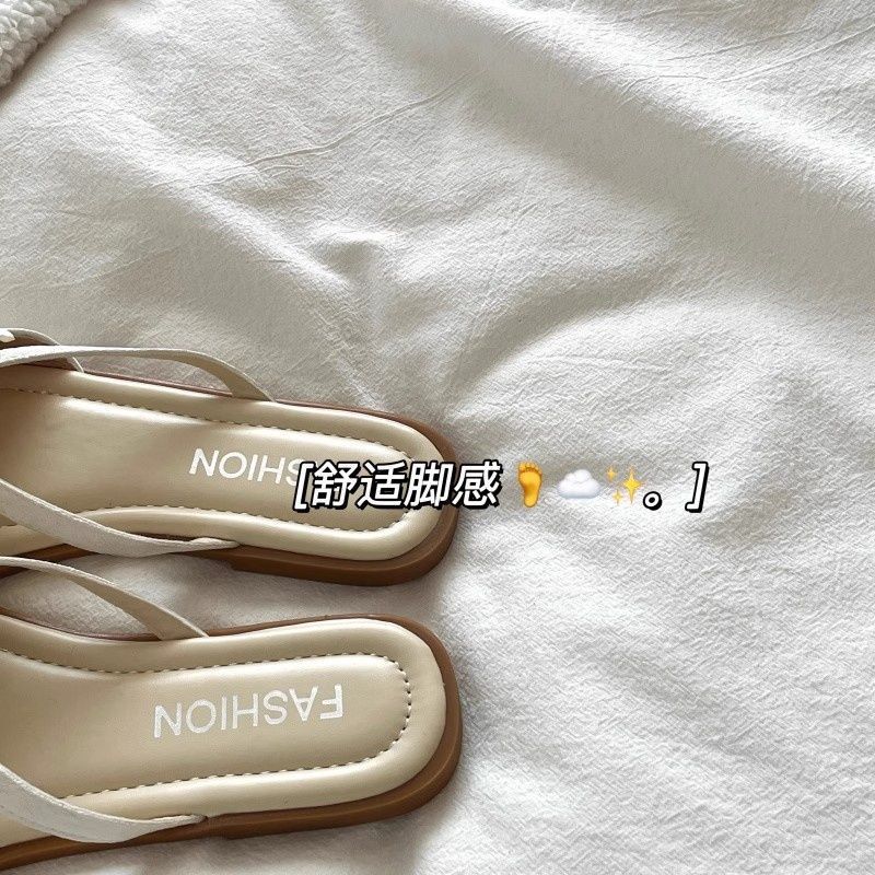 여성용 플랫 슬리퍼 2025 여름 한국 스타일 요정풍 꽃무늬 비치 샌들 여성용 플랫 편안한 슬리퍼스토어 가기