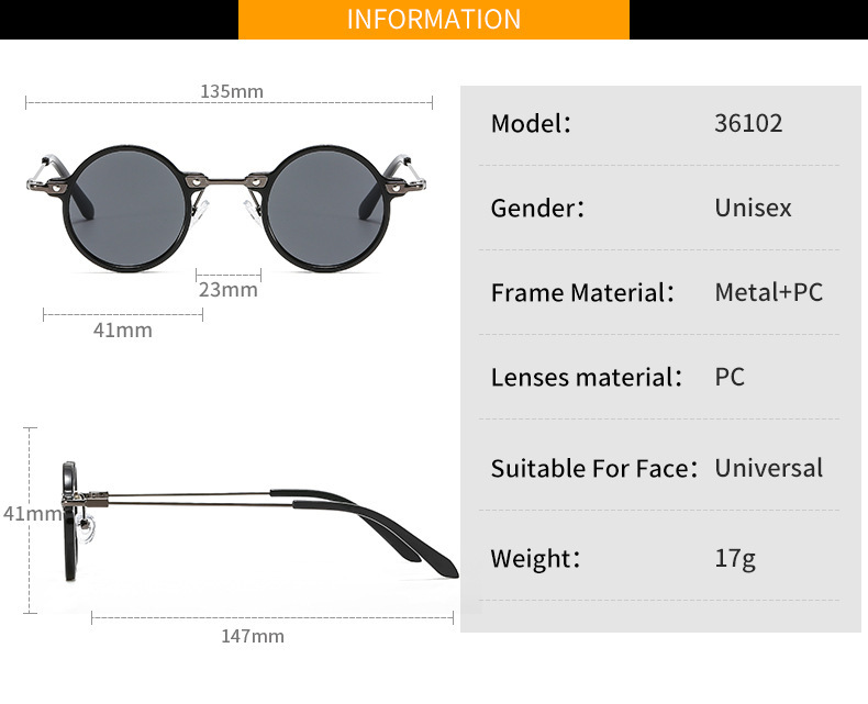 개성 넘치는 라운드 프레임 레트로 선글라스, 패셔너블한 해외 직구 자외선 차단 선글라스, 트렌디한 스트릿 스타일 선글라스스토어 가기