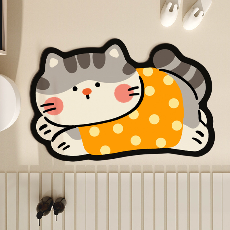규조토 진흙 바닥 매트 욕실 싱크대 흡수성 미끄럼 방지 매트 만화 고양이 화장실 욕실 바닥 매트 드롭 배송