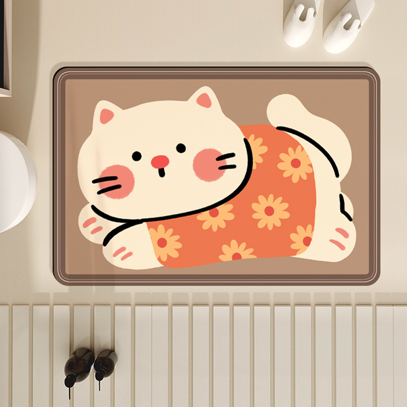 규조토 진흙 바닥 매트 욕실 싱크대 흡수성 미끄럼 방지 매트 만화 고양이 화장실 욕실 바닥 매트 드롭 배송스토어 가기