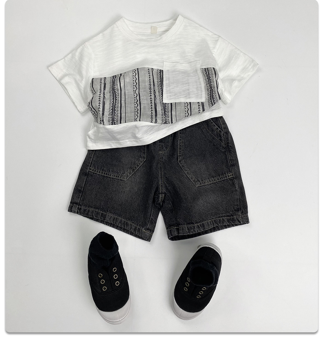남아 및 여아용 맞춤형 여름 데님 반바지, 찢어진 워싱 및 디스트레스드 5부 바지, 다용도 아동복, 여름 옷, 루즈하고 트렌디함스토어 가기