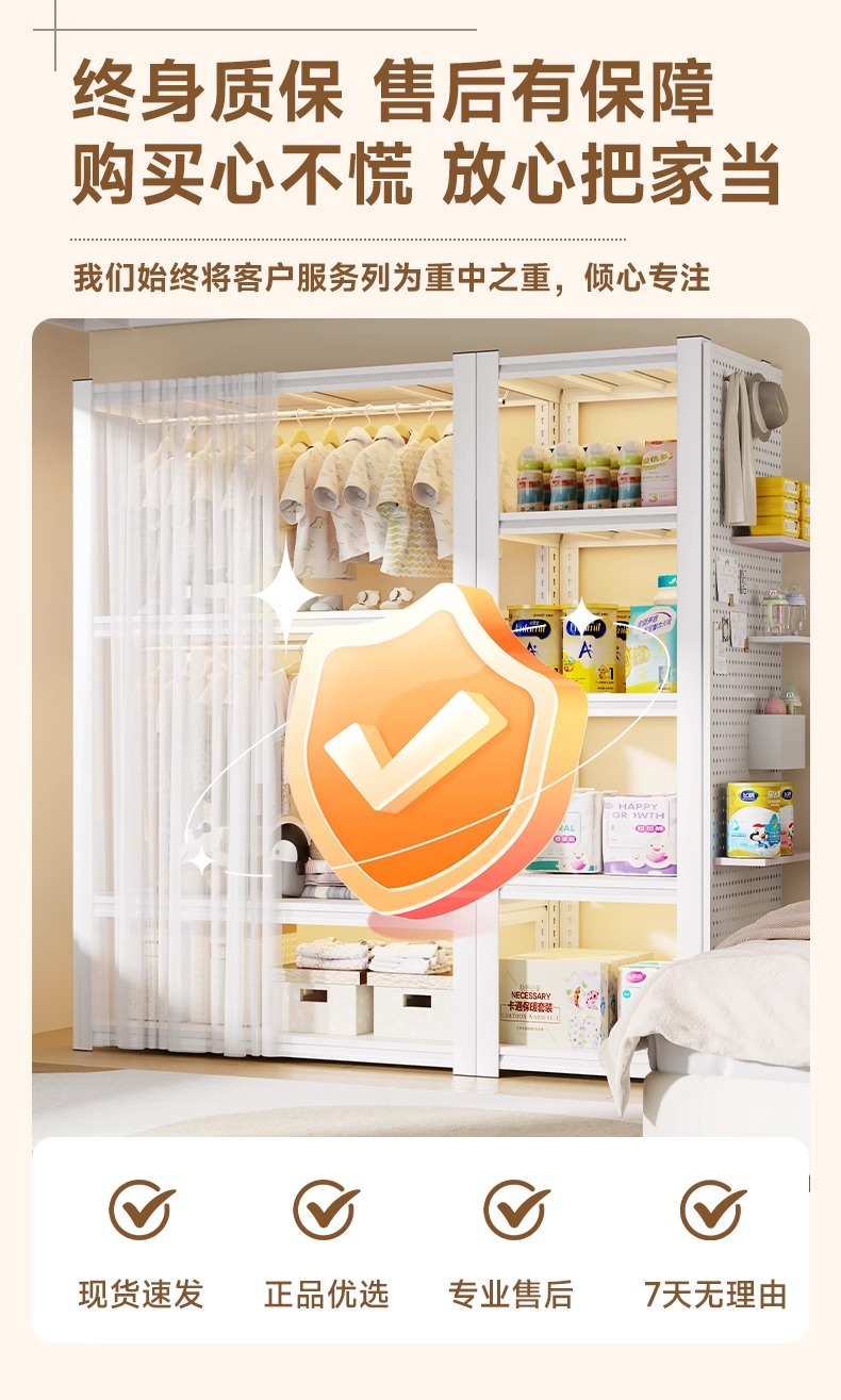 [옷로드 홀 보드가있는 먼지 커튼] 가정용 선반 옷걸이 오픈 옷장 스틸 단순 코트 랙