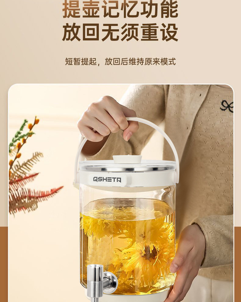 Qishengtai QSHETA 건강 냄비 가정용 대용량 일정한 온도 다기능 과일 와인 스튜 물 꽃 차 양동이 파티스토어 가기