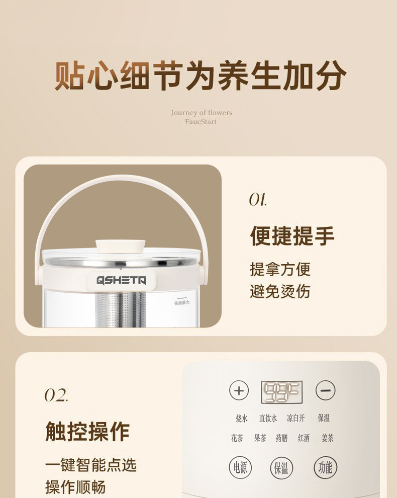 Qishengtai QSHETA 건강 냄비 가정용 대용량 일정한 온도 다기능 과일 와인 스튜 물 꽃 차 양동이 파티