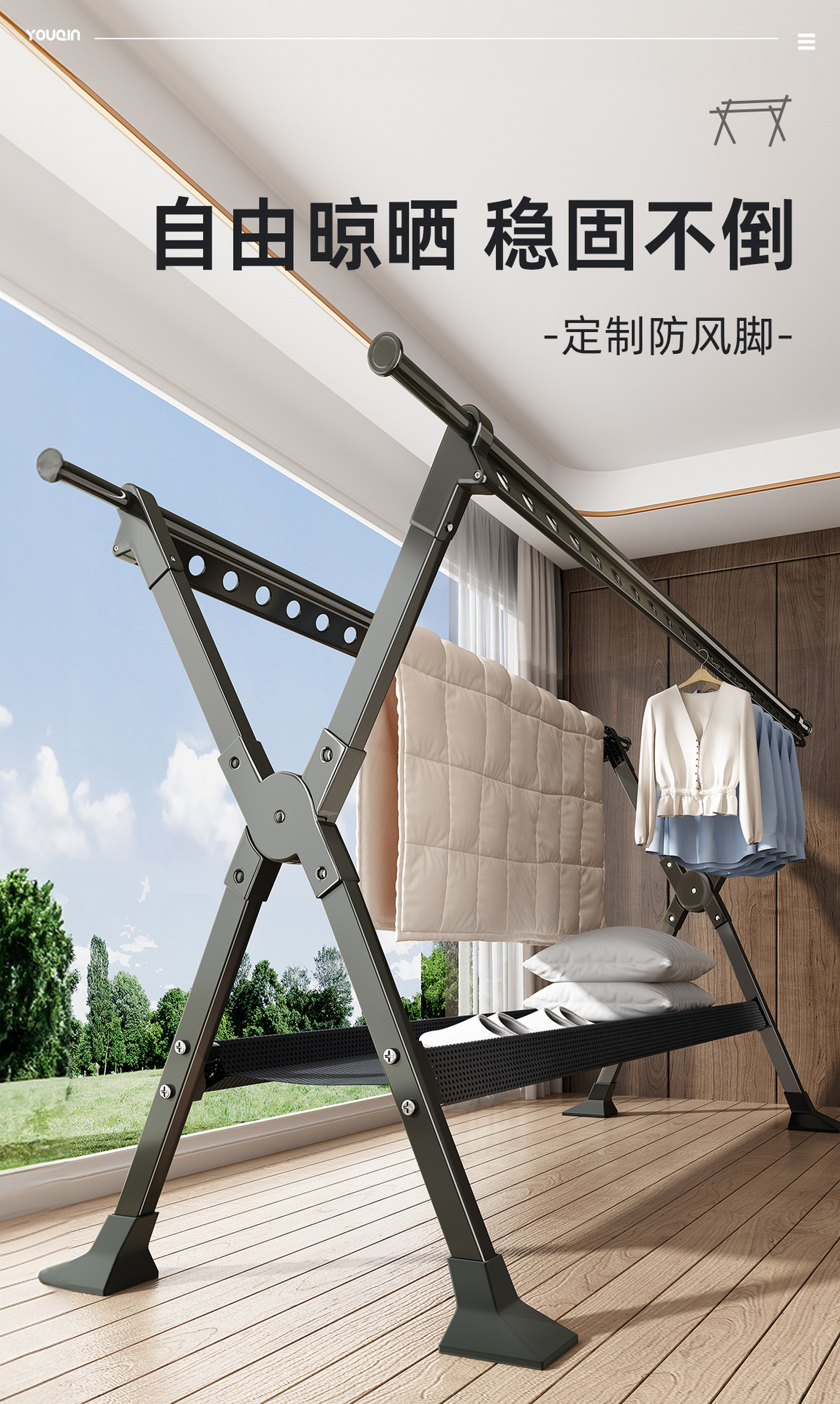 • [설치 불필요 - 리프팅 버전] 2.5m + 방풍 말 발판 + 신발 건조대 * 4