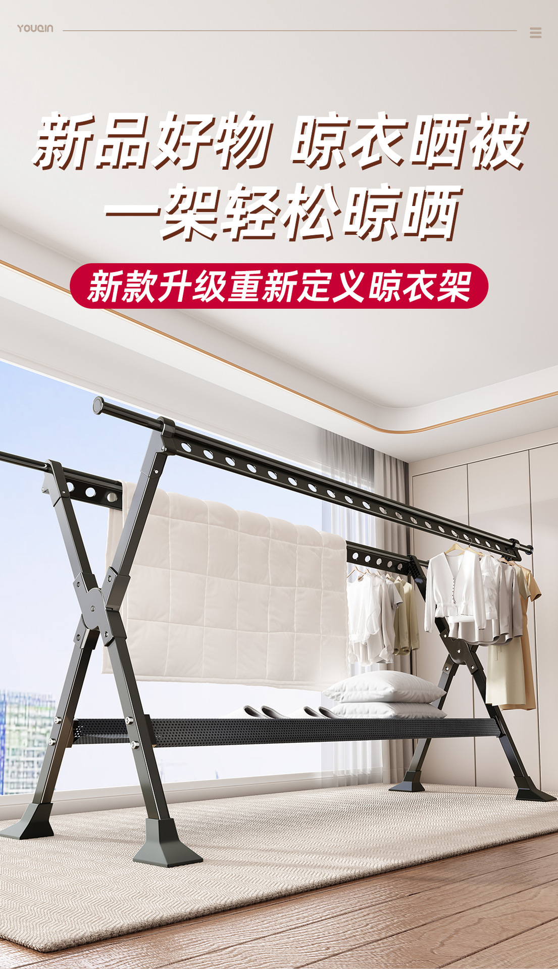 • [설치 불필요 - 리프팅 버전] 2.36m + 방풍 말 발판 + 빨래 건조망