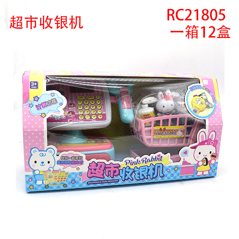Yiyan 핑크 토끼 미니 캐빈 베이킹 편의점 토끼 출납원 침실 주방 소녀 놀이 집 장난감스토어 가기