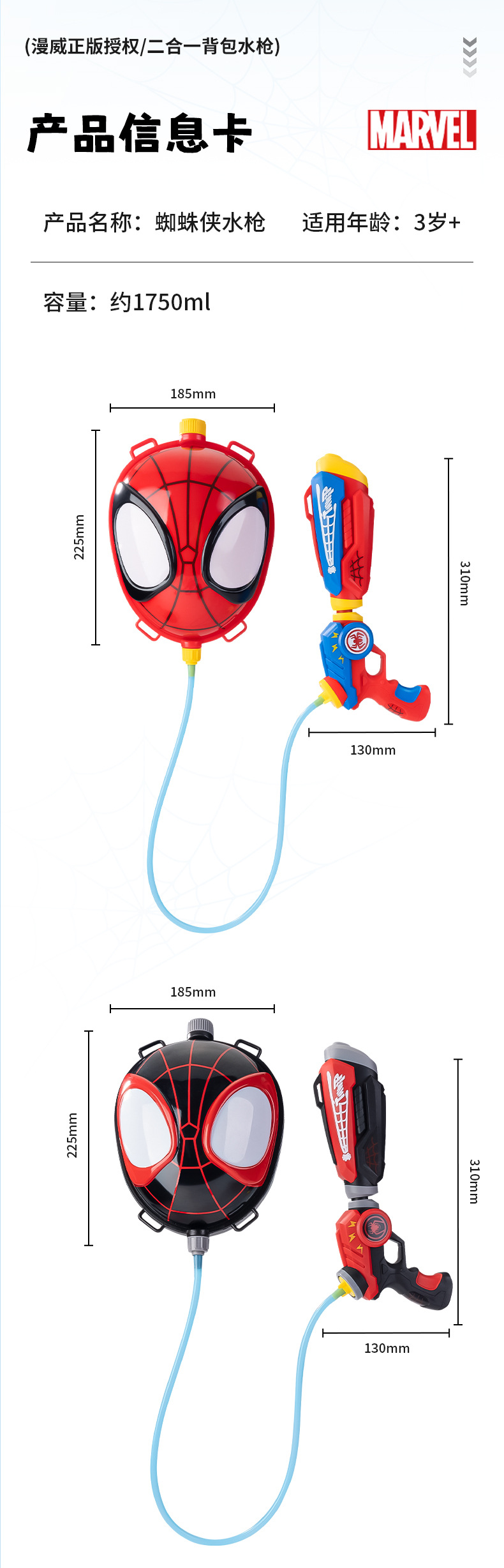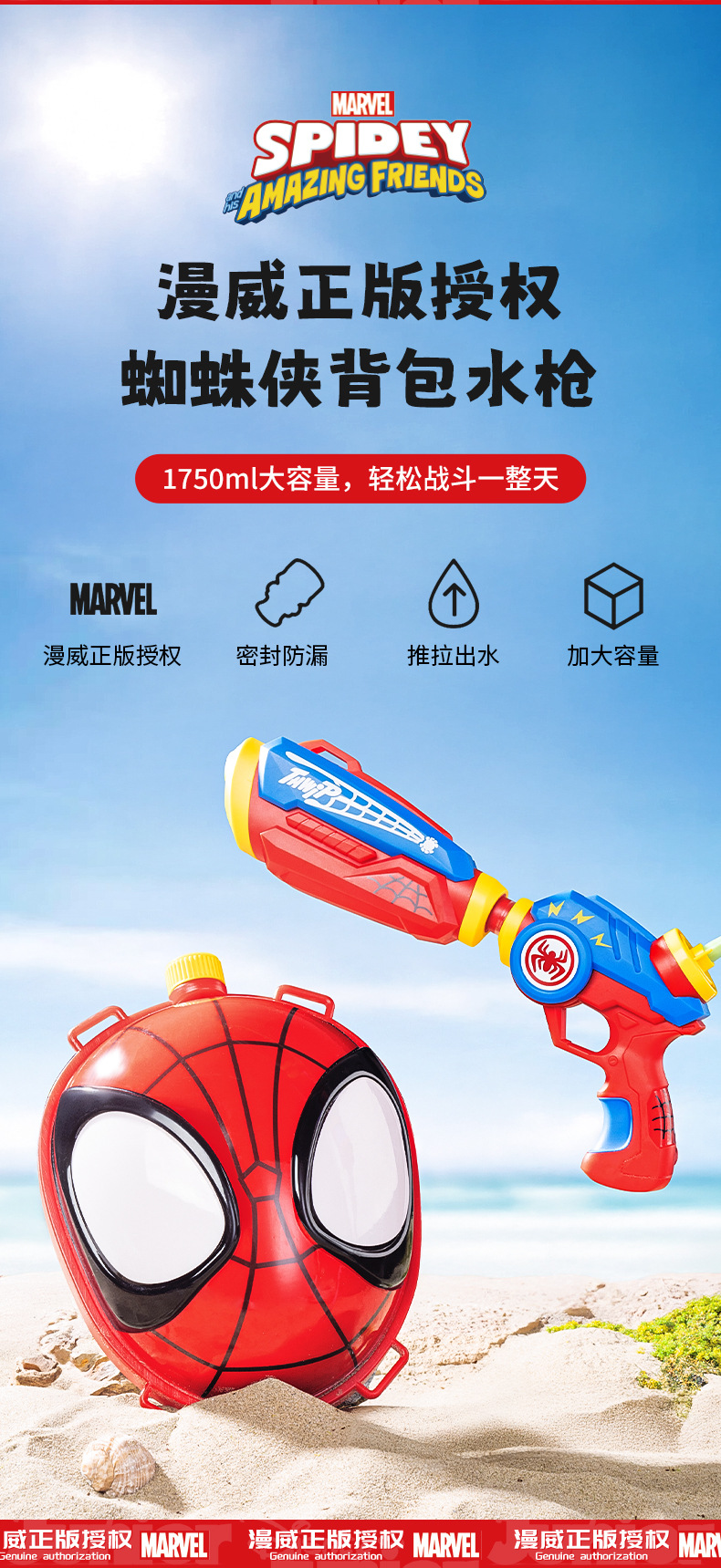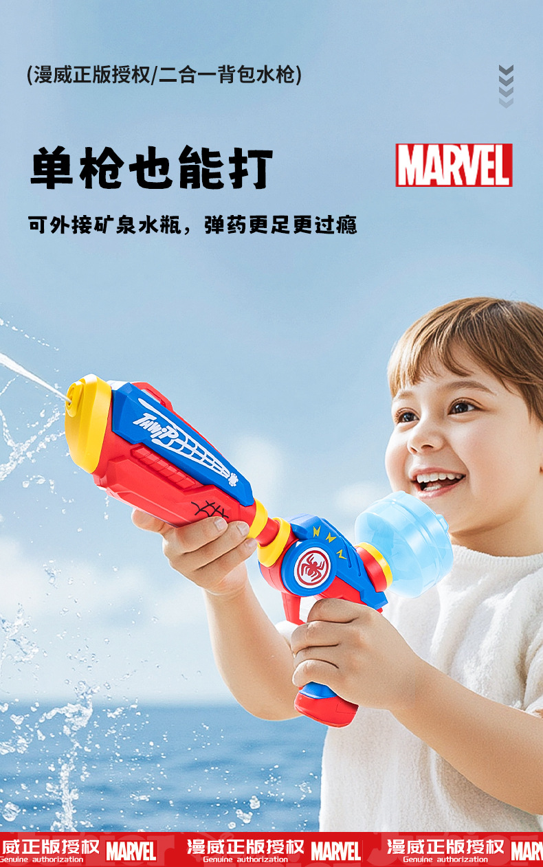 정품 공인 마블 스파이더 맨 배낭 물총 대용량 물총 해변 물놀이 노점 어린이 장난감