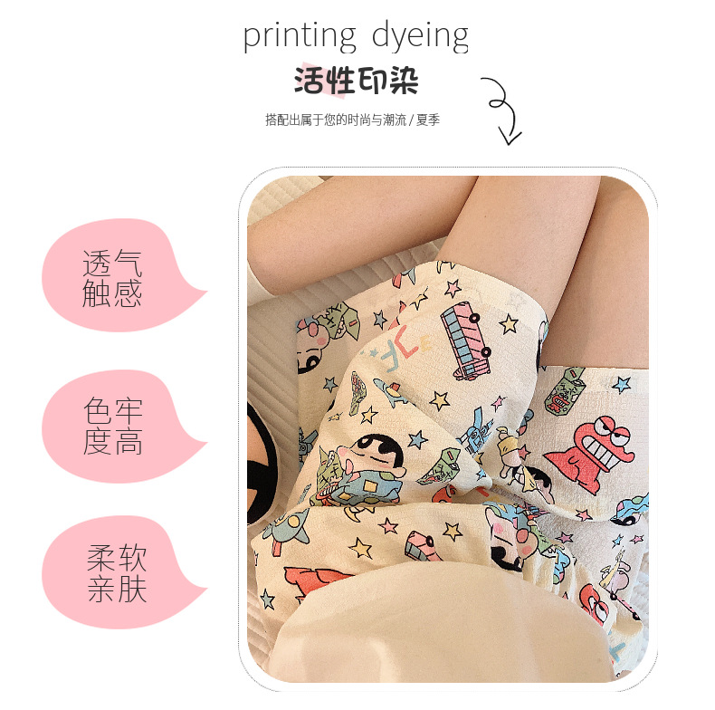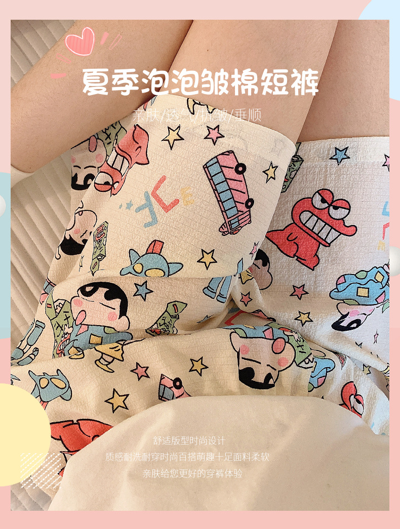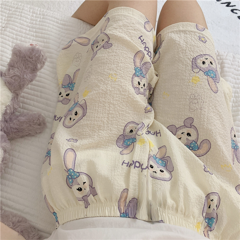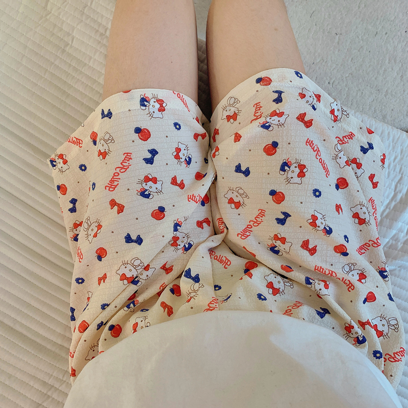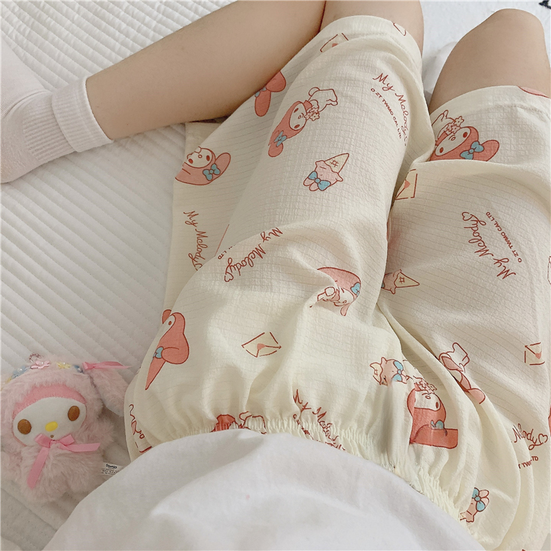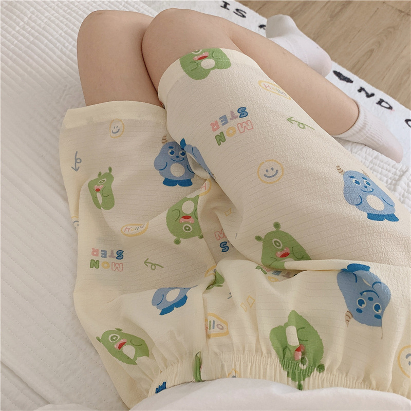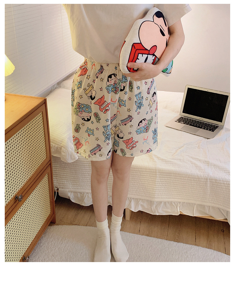 일본식 만화 인쇄 된 파자마 바지 여성의 여름 새로운 캐주얼 루즈 워킹 바지 얇은 홈 바지를 입고 외부 반바지스토어 가기