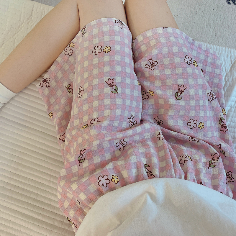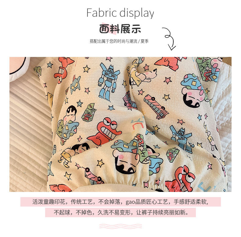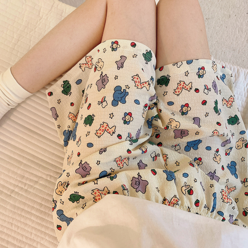 일본식 만화 인쇄 된 파자마 바지 여성의 여름 새로운 캐주얼 루즈 워킹 바지 얇은 홈 바지를 입고 외부 반바지