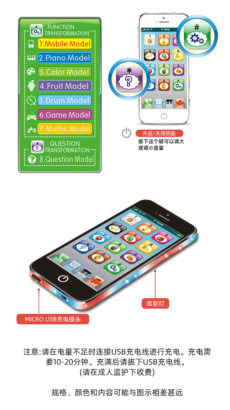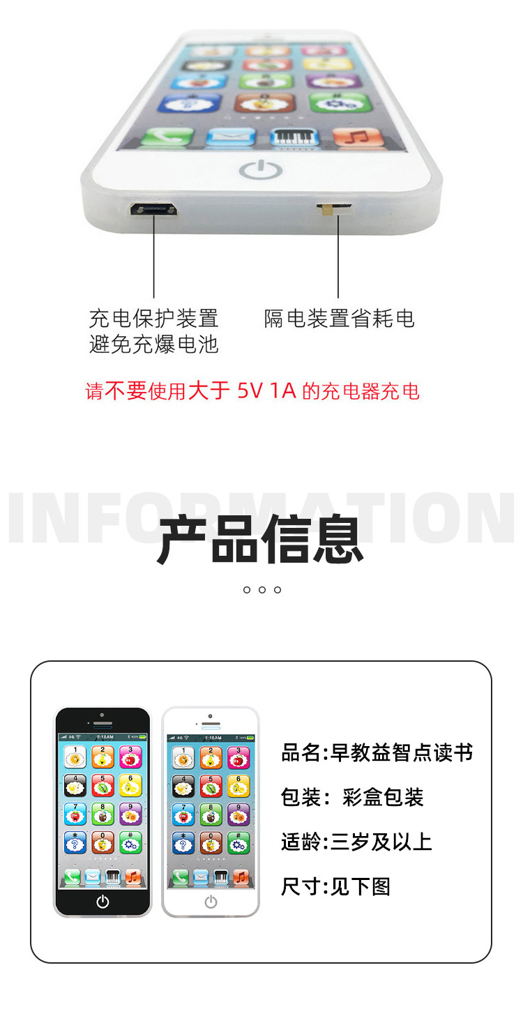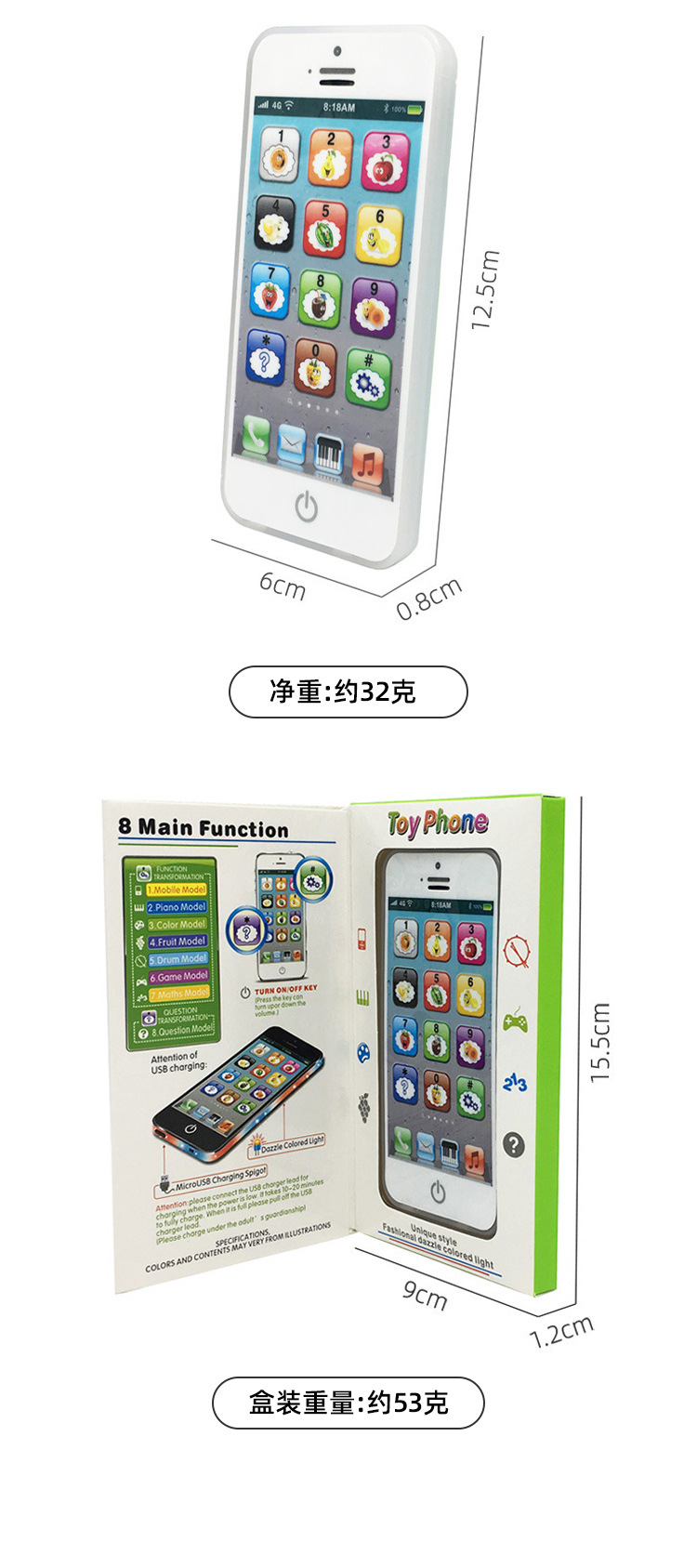 국경 간 폭발 어린이 교육 장난감 휴대 전화 음악 라이트 터치 스크린 학습 장난감 충전 영어 조기 교육 기계스토어 가기