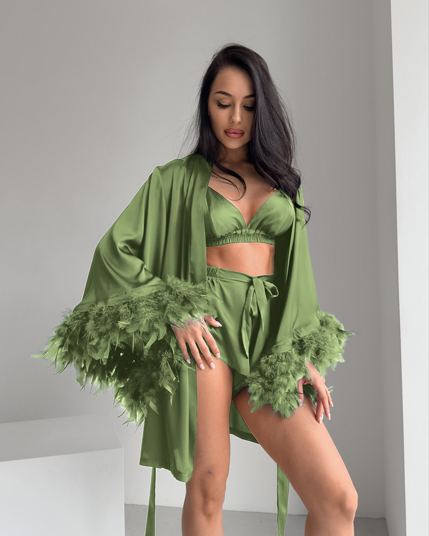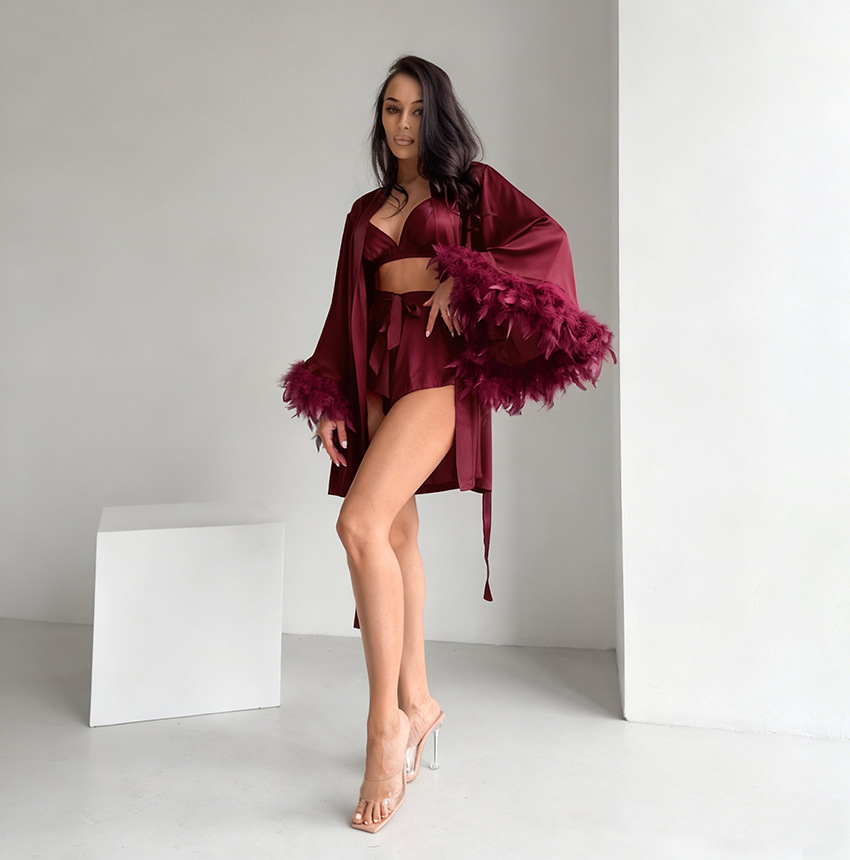 2026년 신상품 질감 있는 깃털 소재의 부드러운 잠옷 3종 세트, 유럽 및 미국 여성 홈웨어 도매