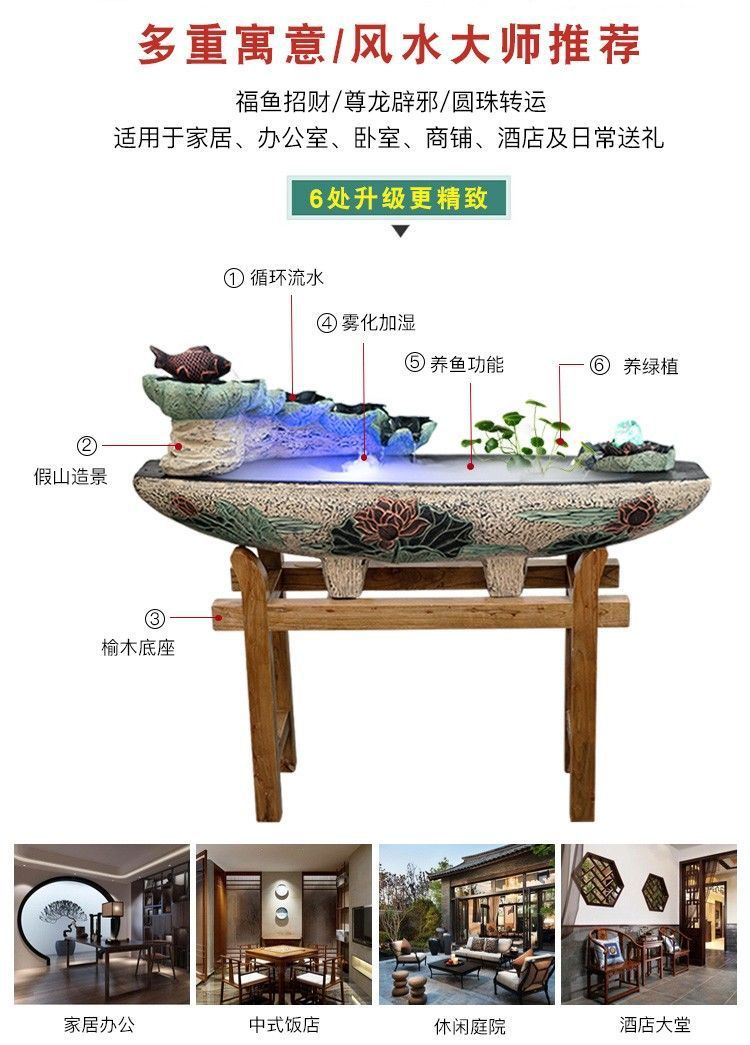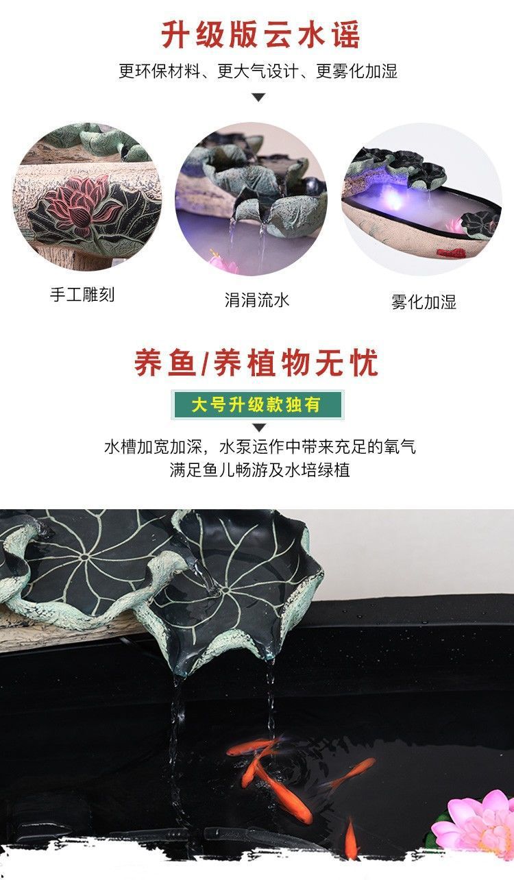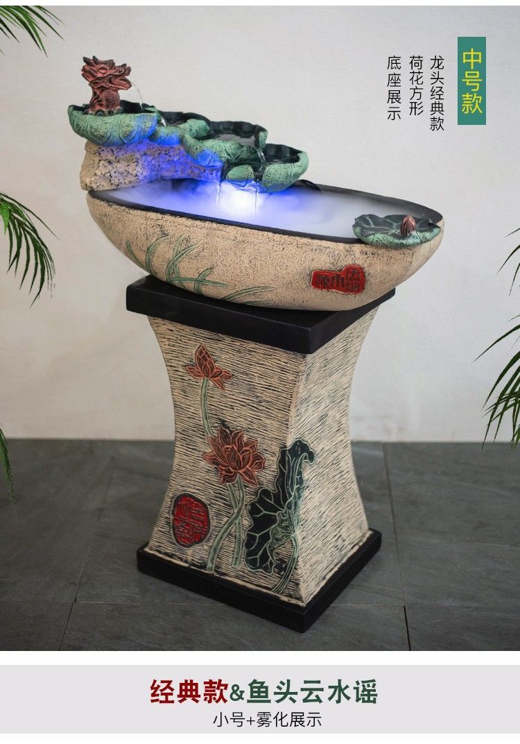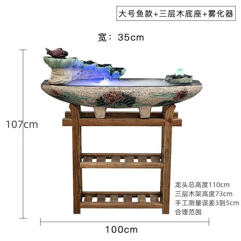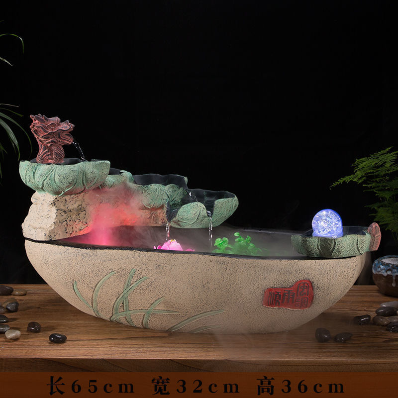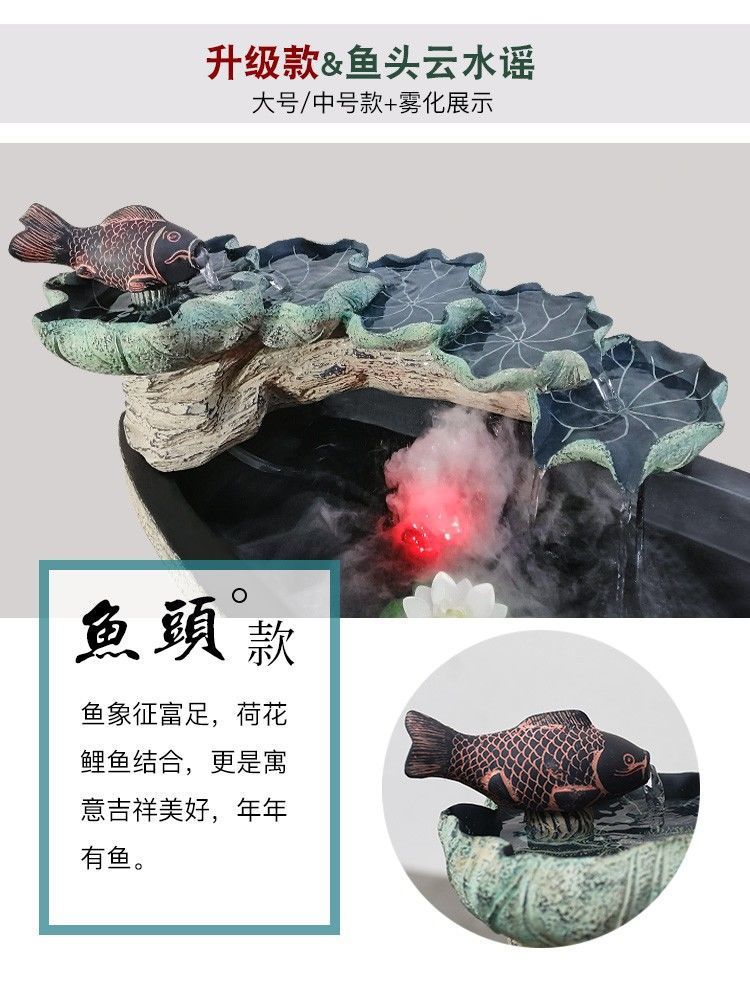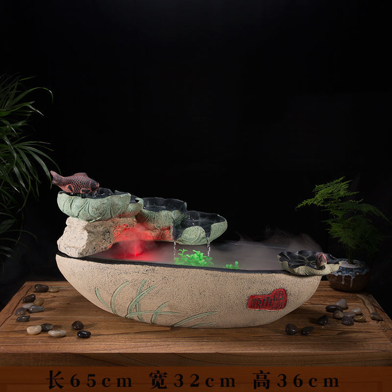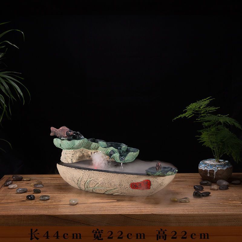 새로운 중국 스타일의 창조적 인 러돌과 흐르는 물 장식품 분수 물고기 탱크 거실 사무실 행운의 데스크탑 장식 오프닝 선물