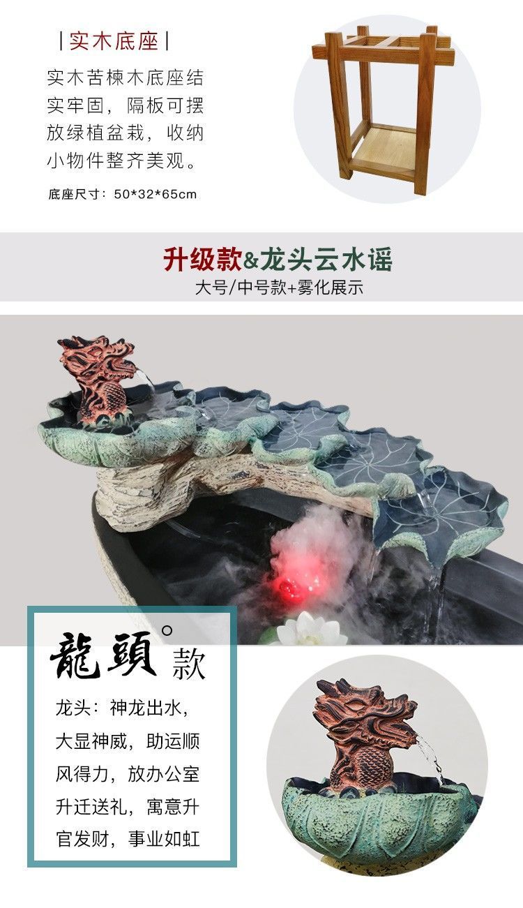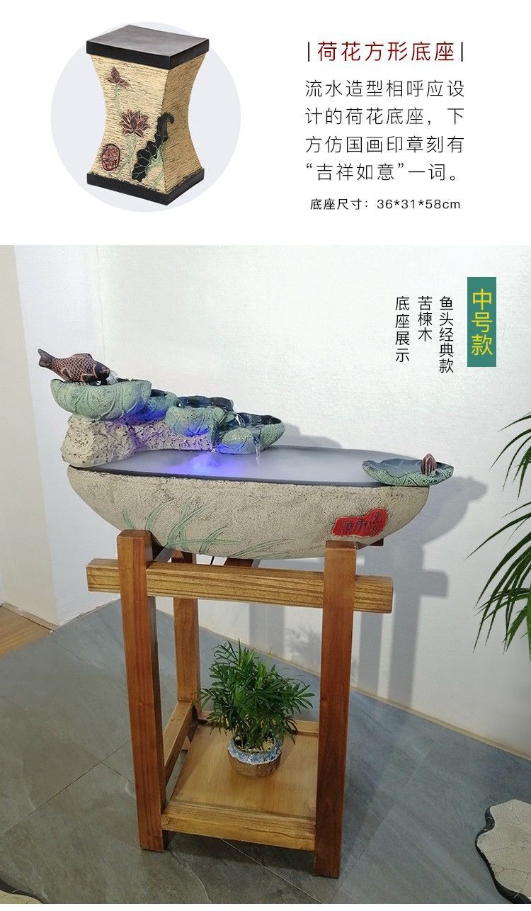 새로운 중국 스타일의 창조적 인 러돌과 흐르는 물 장식품 분수 물고기 탱크 거실 사무실 행운의 데스크탑 장식 오프닝 선물스토어 가기