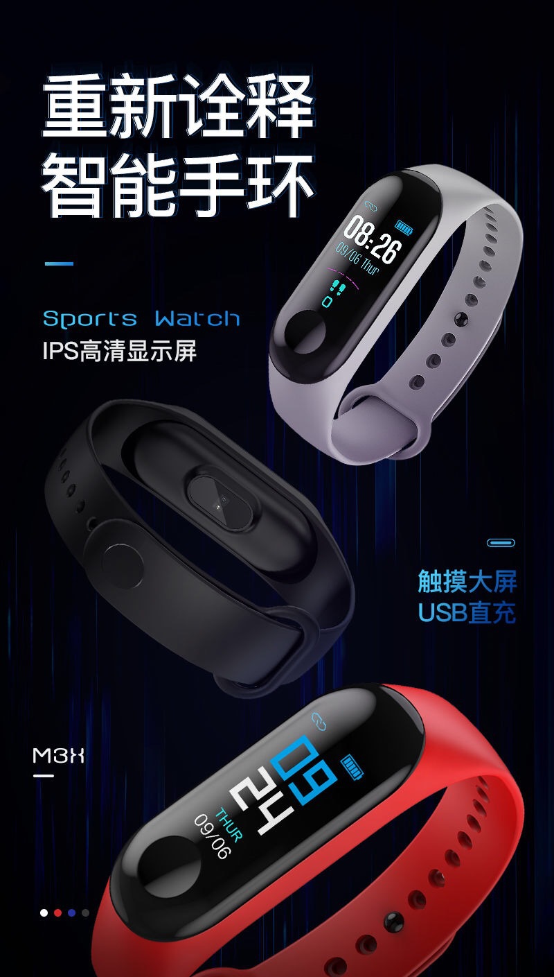 M3plus 스마트 팔찌 M3 스마트 팔찌 컬러 스크린 팔찌 심장 박동 운동 스텝 미터 방수 팔찌 공장 아울렛스토어 가기